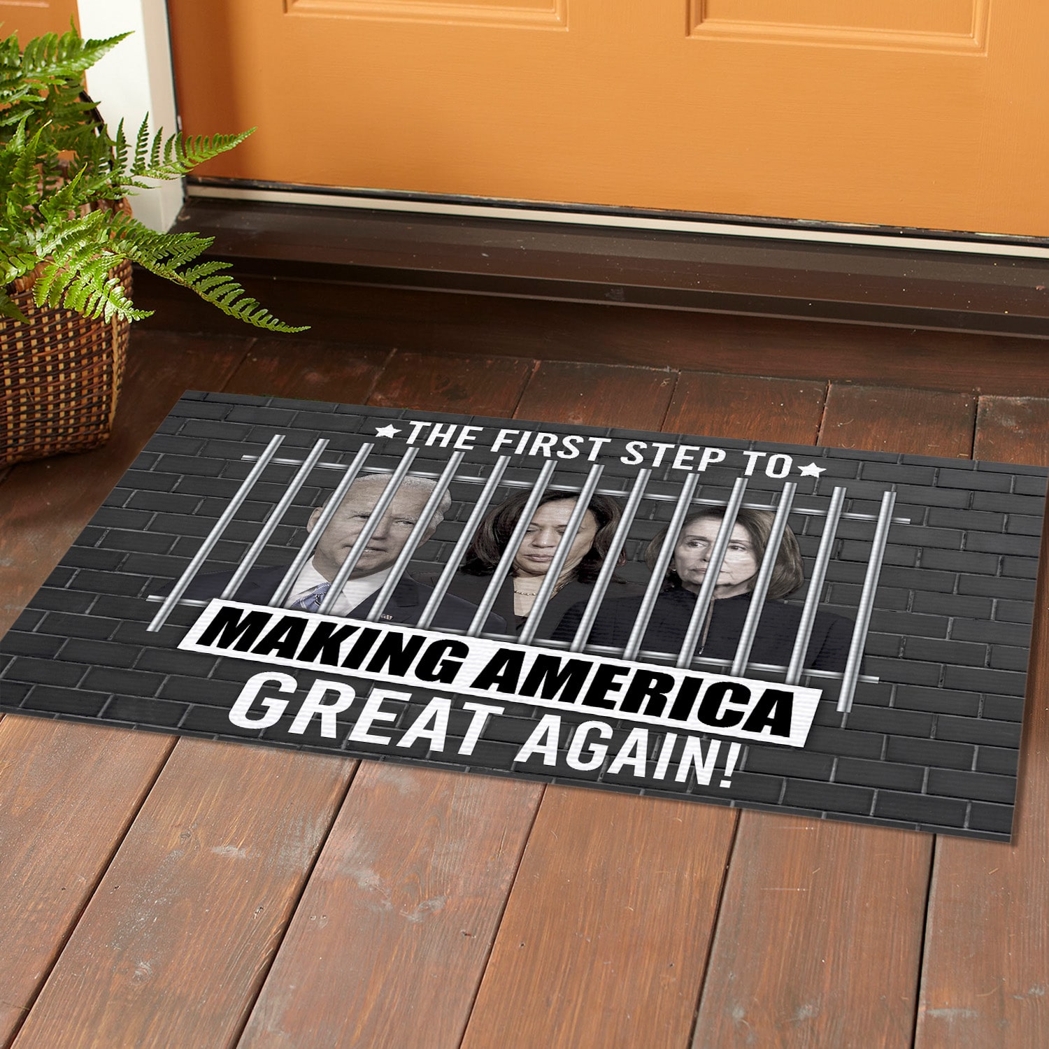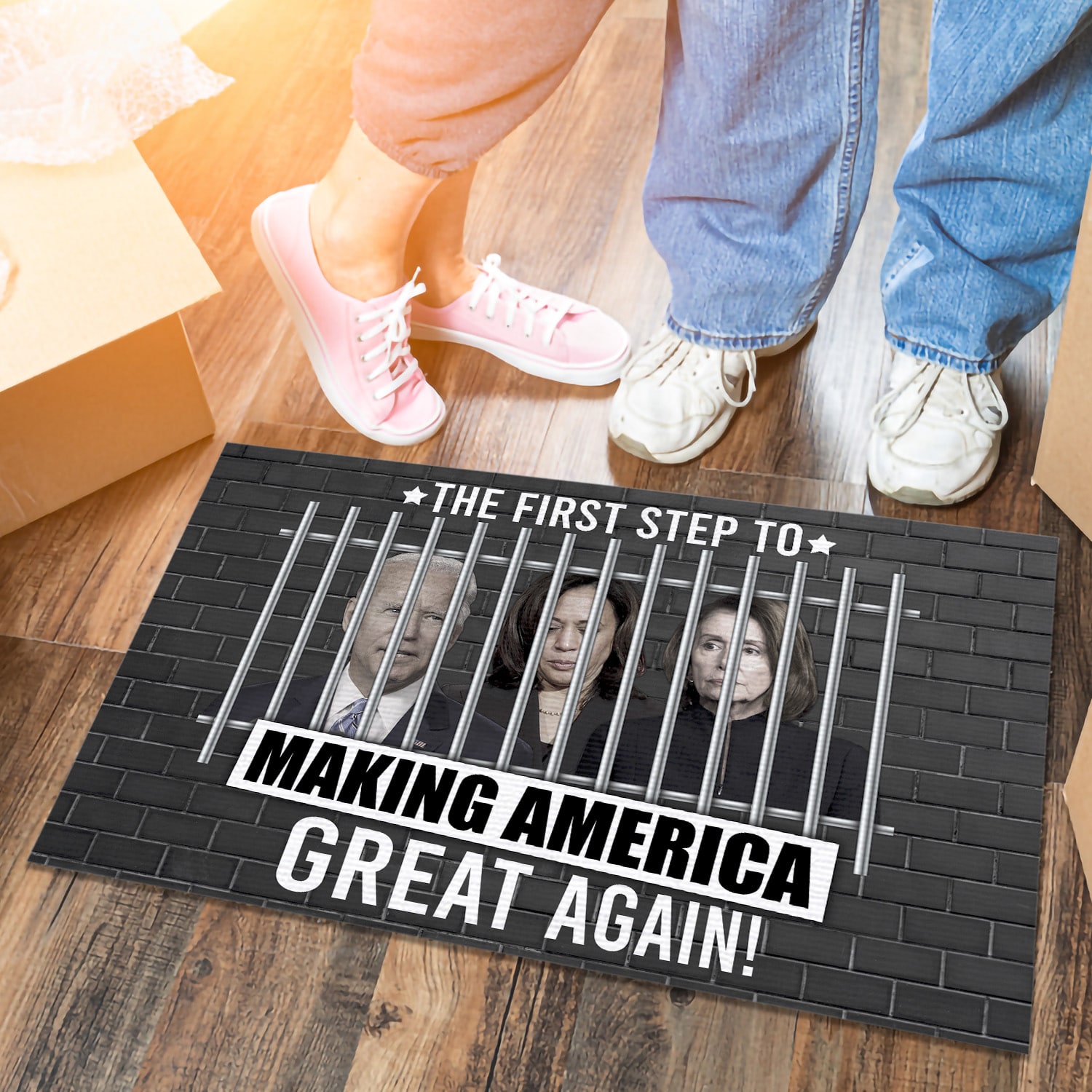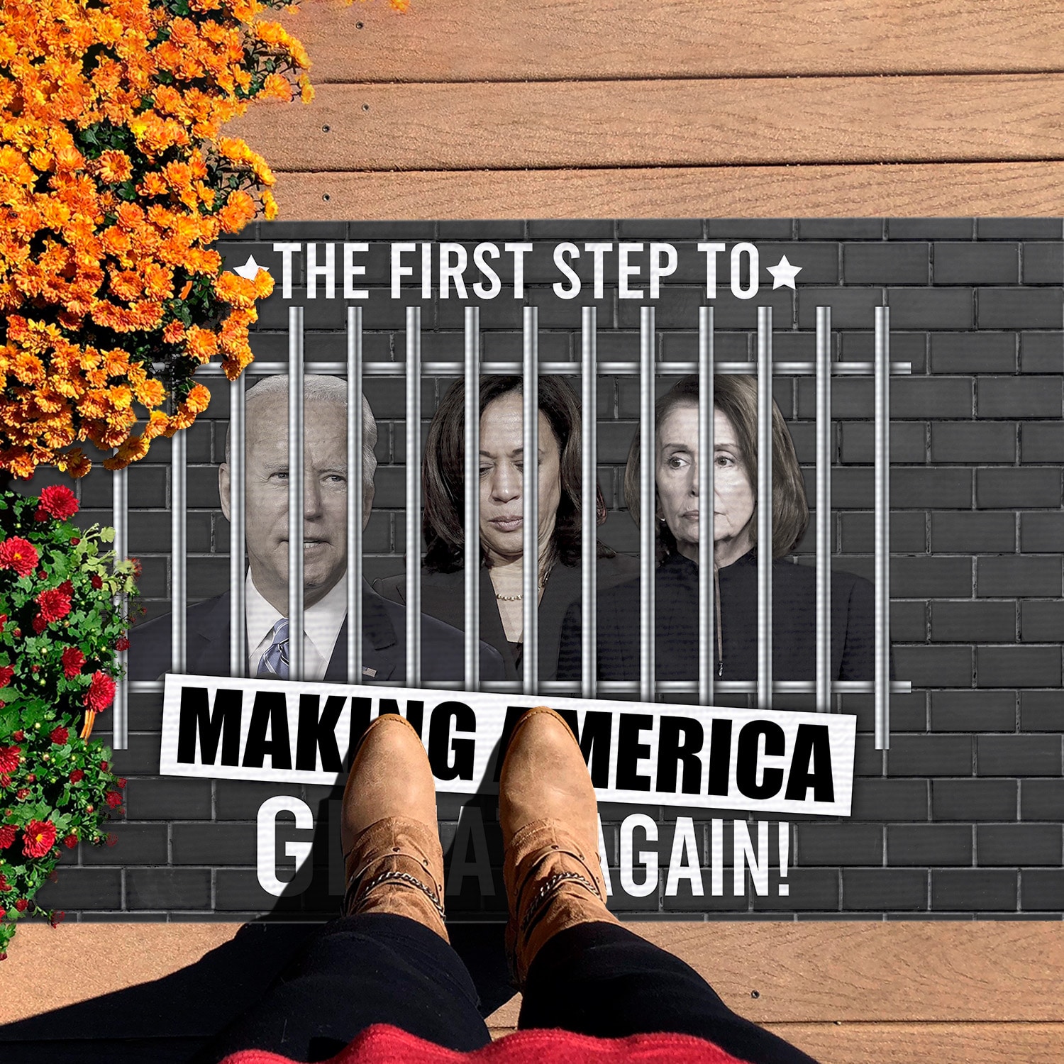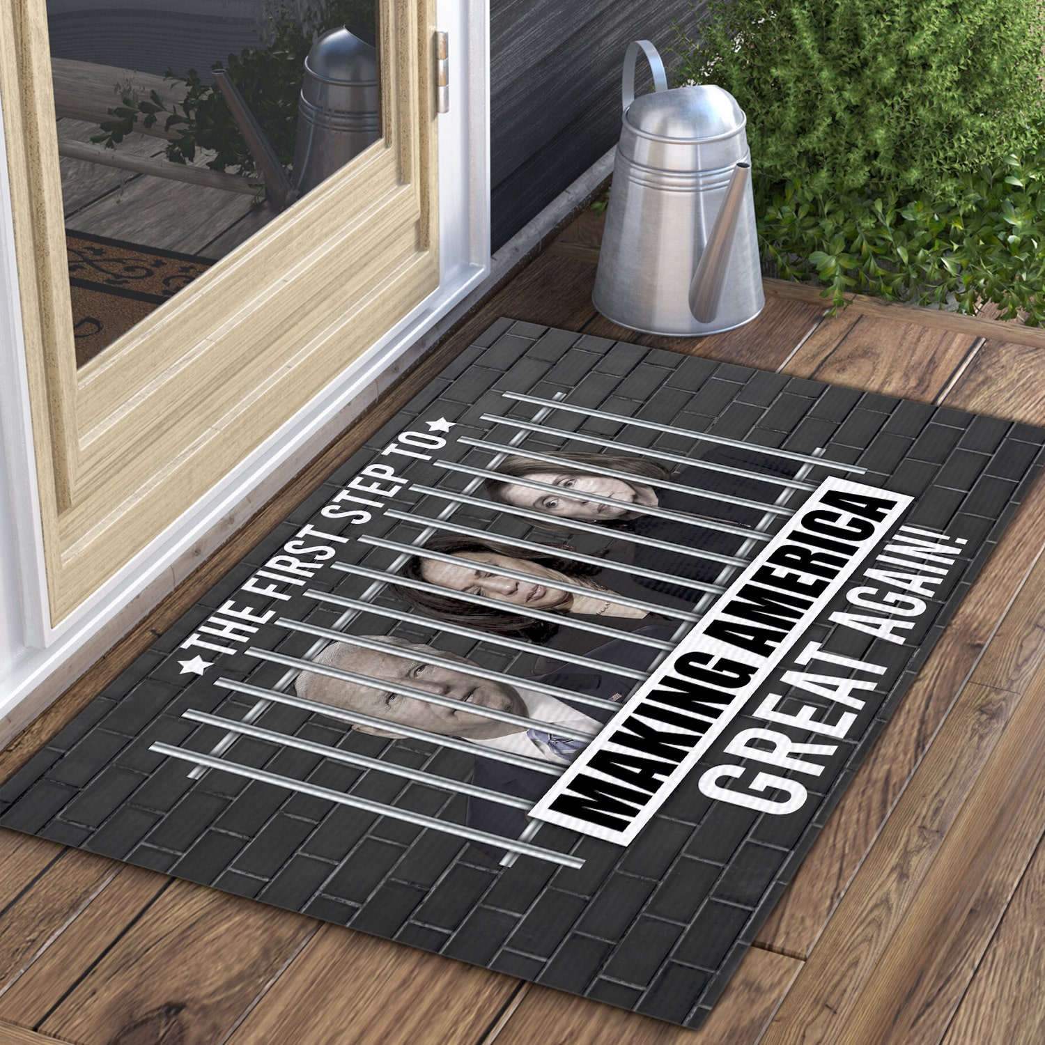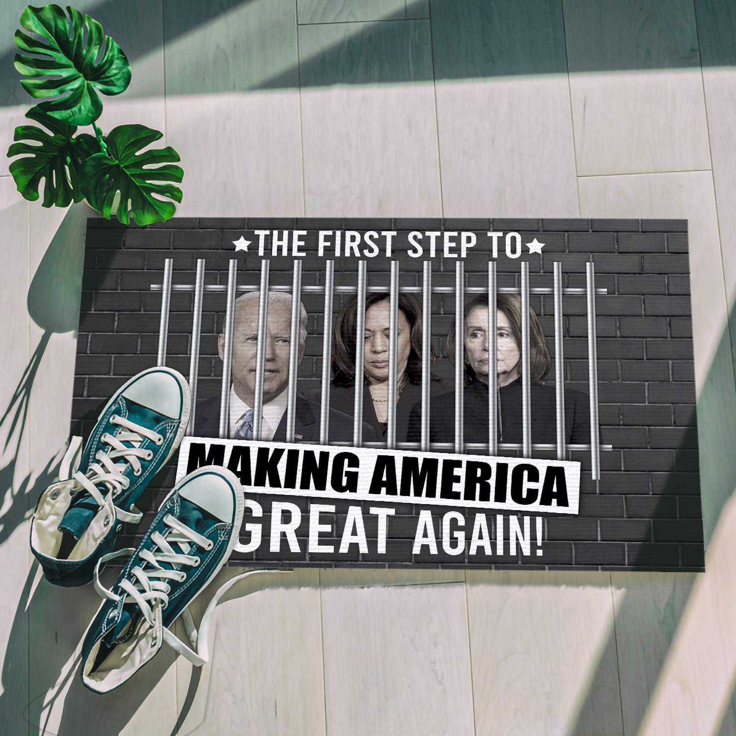 Let’s Shop The First Step to Making America Great Again Anti Biden Kamala Pelosi Entrance Indoor Outdoor Decorative Doormat!