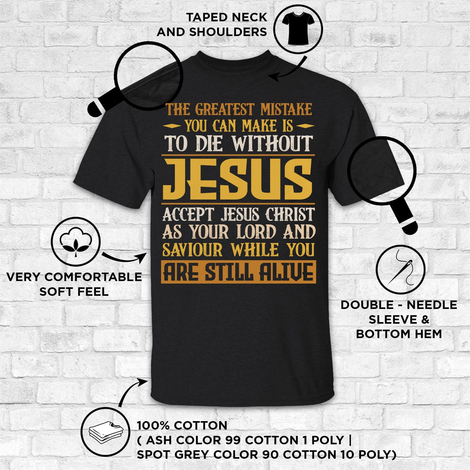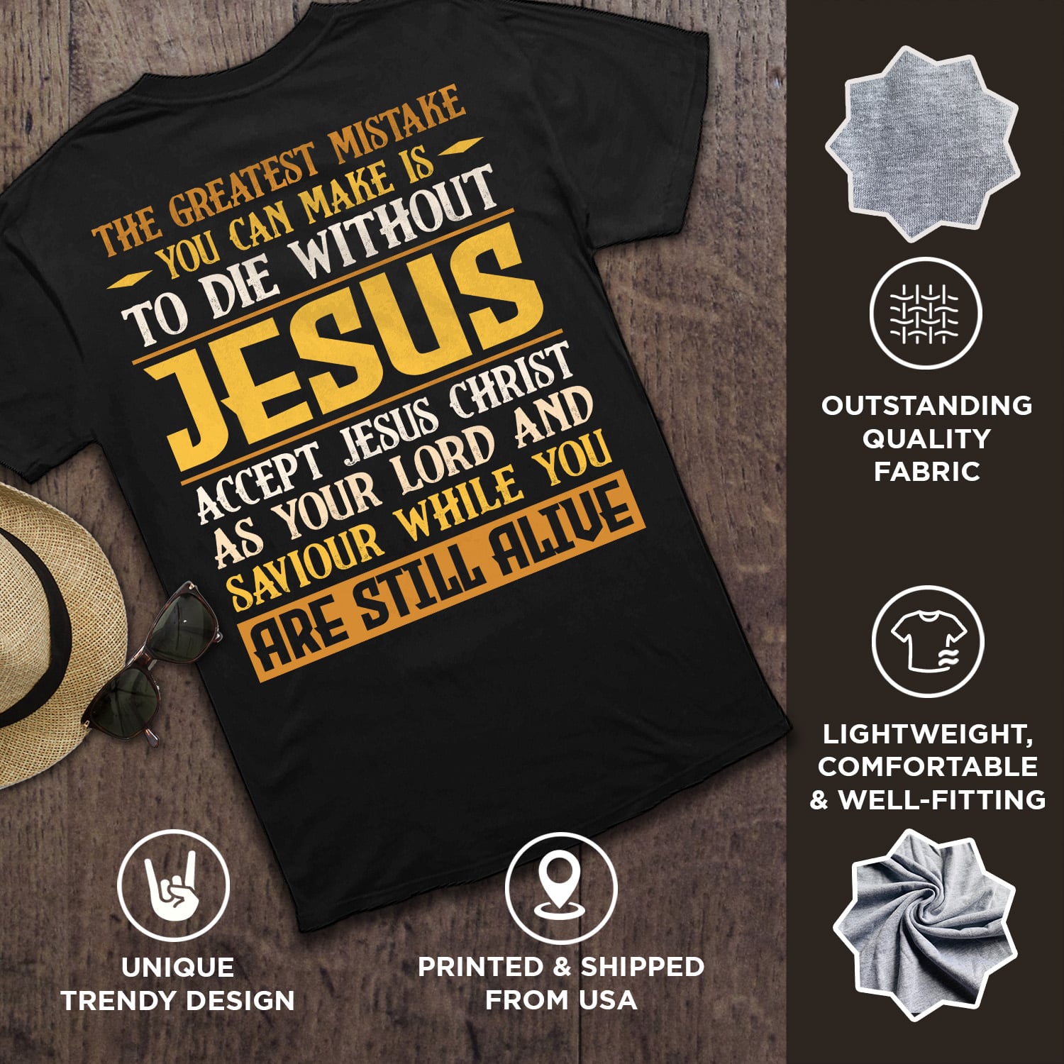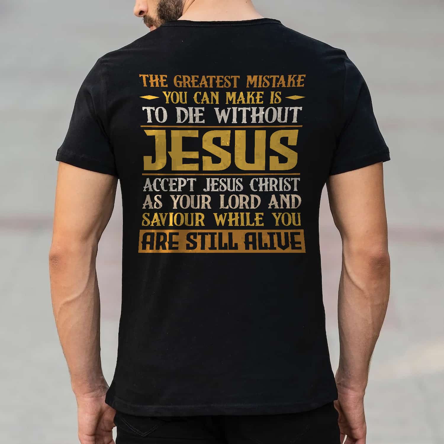 Are you spending too much time to find creative merchandise for you or suitable & special gifts for your mommy, your daddy, your son, your daughter, your children, your friends or someone you love? The struggle is over because we have various The Greatest Mistake You Can Make Is To Die Without Jesus Back T-Shirt, Jesus Shirt, Accept Jesus Shirt, Jesus Back Shirt, Jesus Christ Shirt which will make perfect presents for your beloveds. In order to make your present stand out, we have created lots of unique and awesome customized photo gifts & personalized designs.