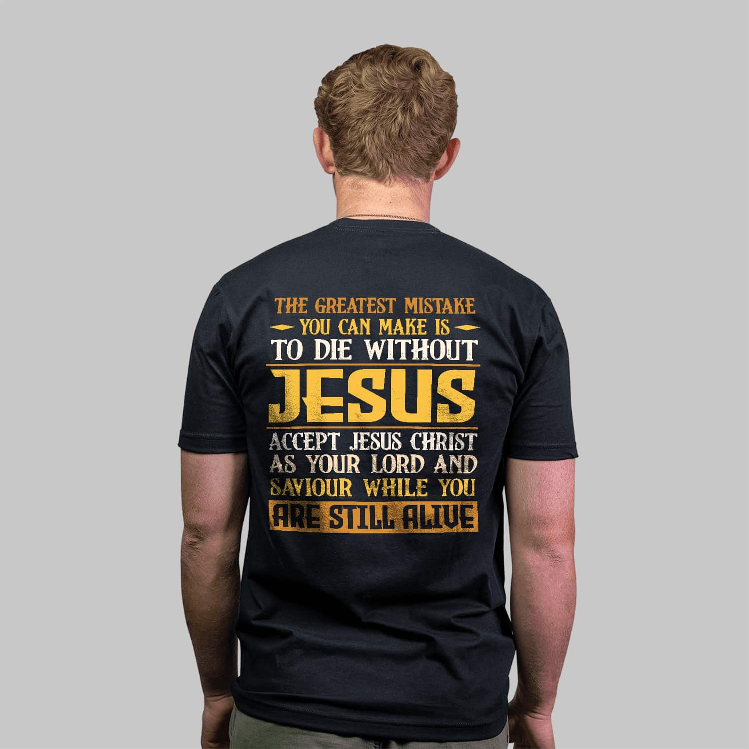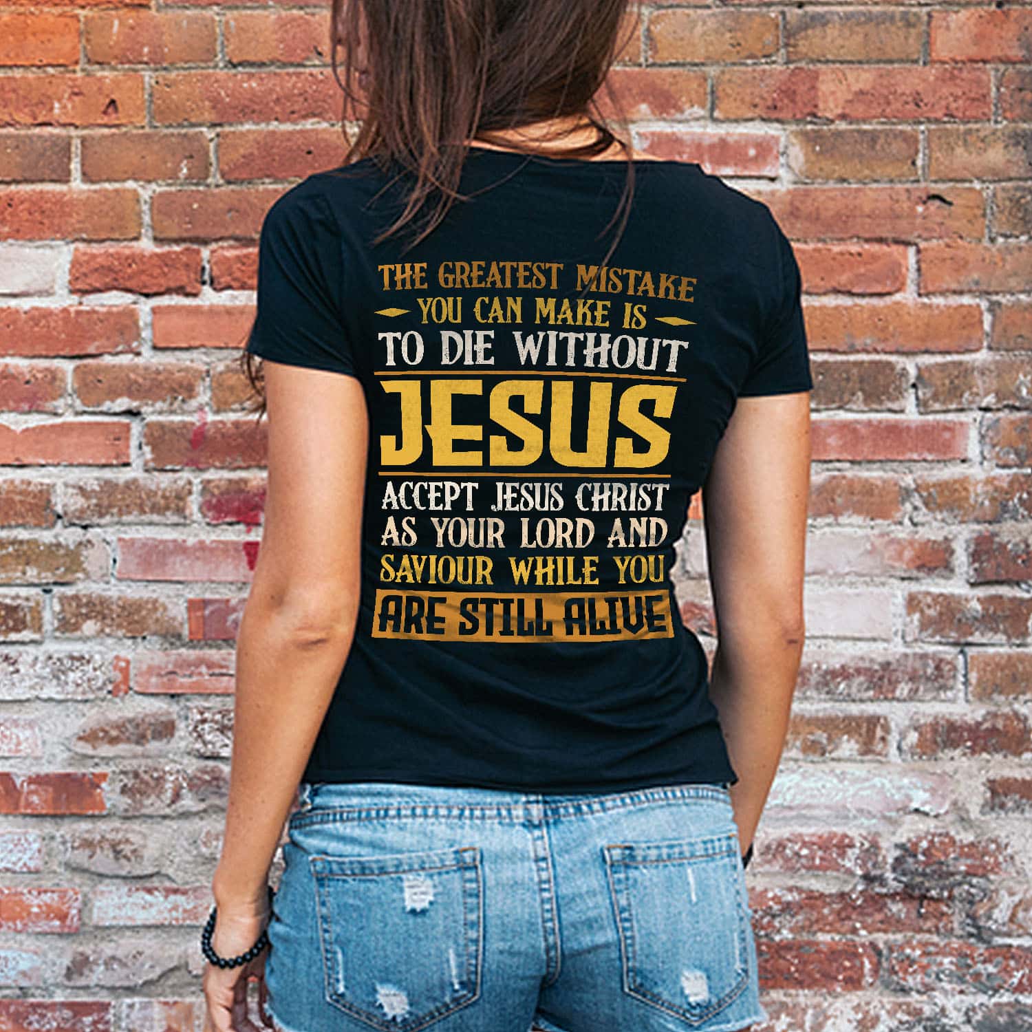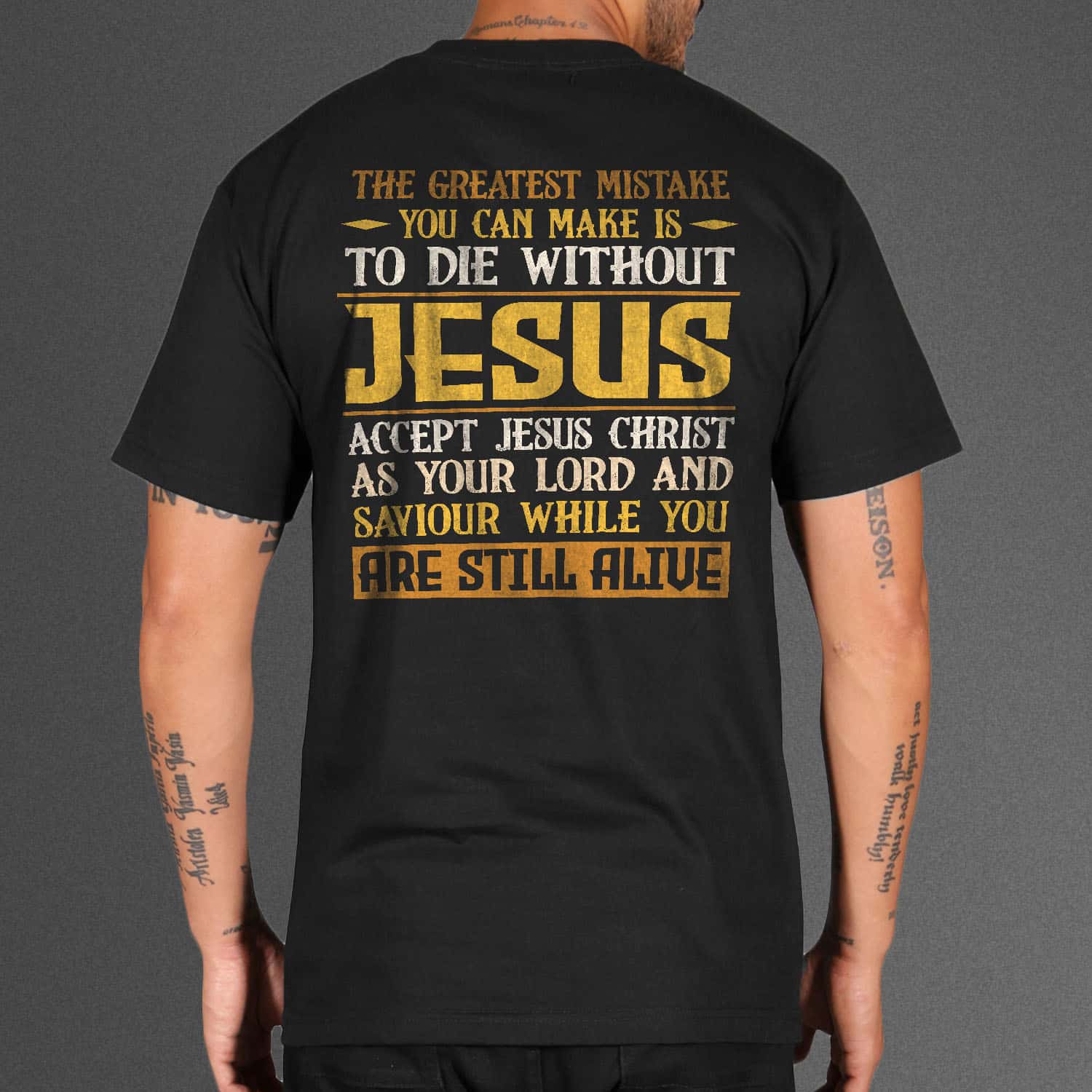 Are you spending too much time to find creative merchandise for you or suitable & special gifts for your mommy, your daddy, your son, your daughter, your children, your friends or someone you love? The struggle is over because we have various The Greatest Mistake You Can Make Is To Die Without Jesus Back T-Shirt, Jesus Shirt, Accept Jesus Shirt, Jesus Back Shirt, Jesus Christ Shirt which will make perfect presents for your beloveds. In order to make your present stand out, we have created lots of unique and awesome customized photo gifts & personalized designs.