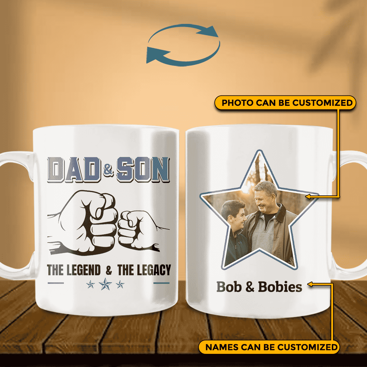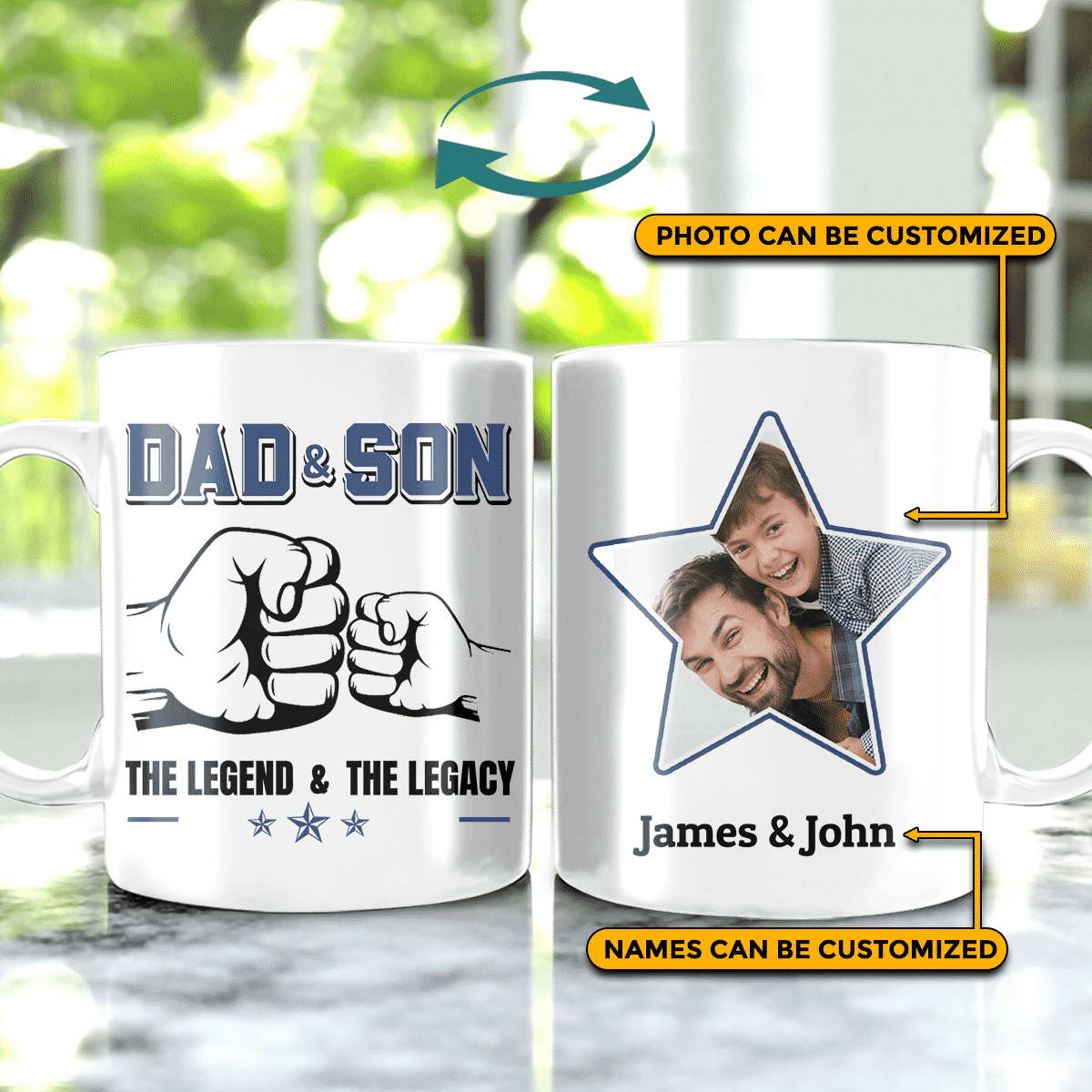 Let’s Shop Custom Photo Dad And Son The Legend The Legacy Coffee Mug – Beer Stein – Water Bottle – Color Changing Mug!