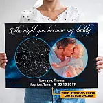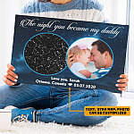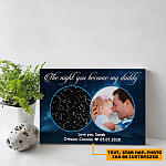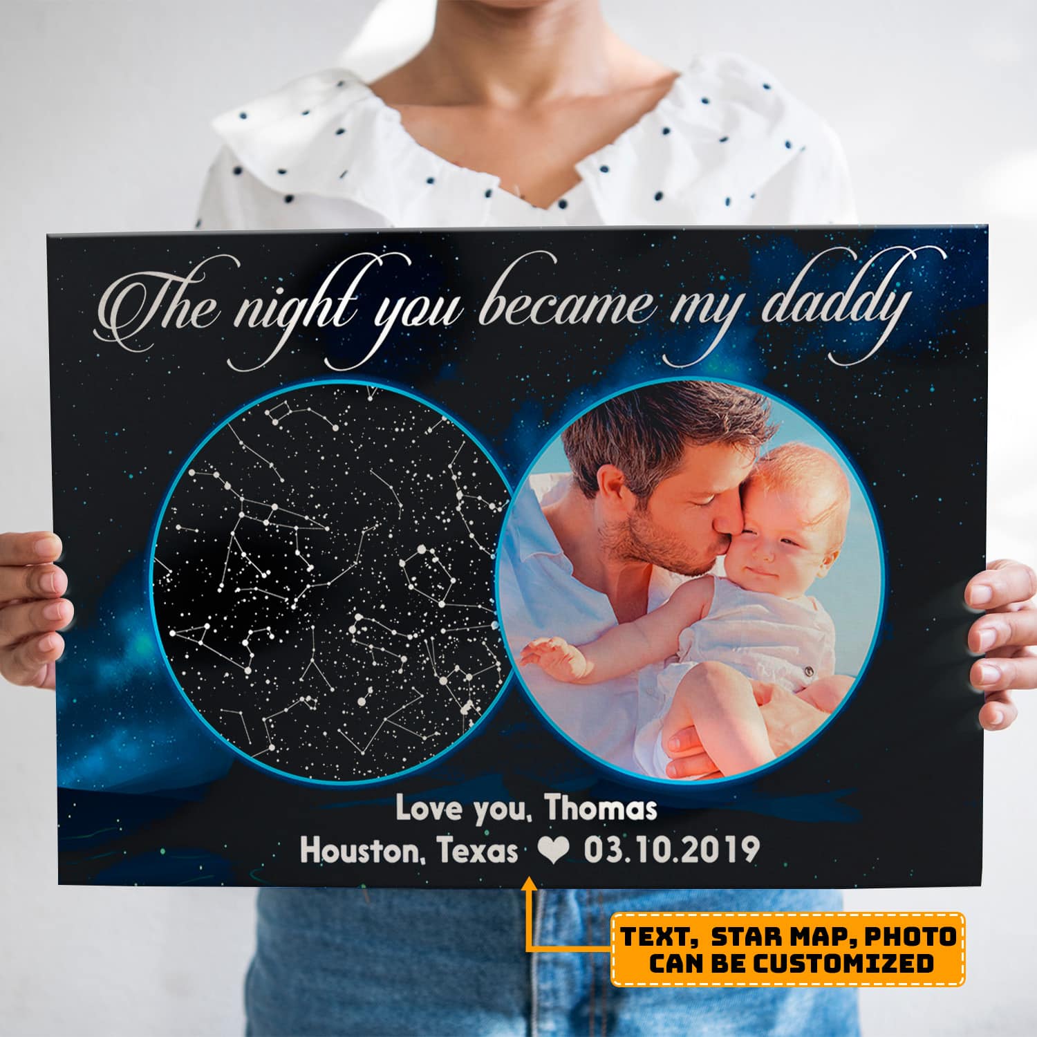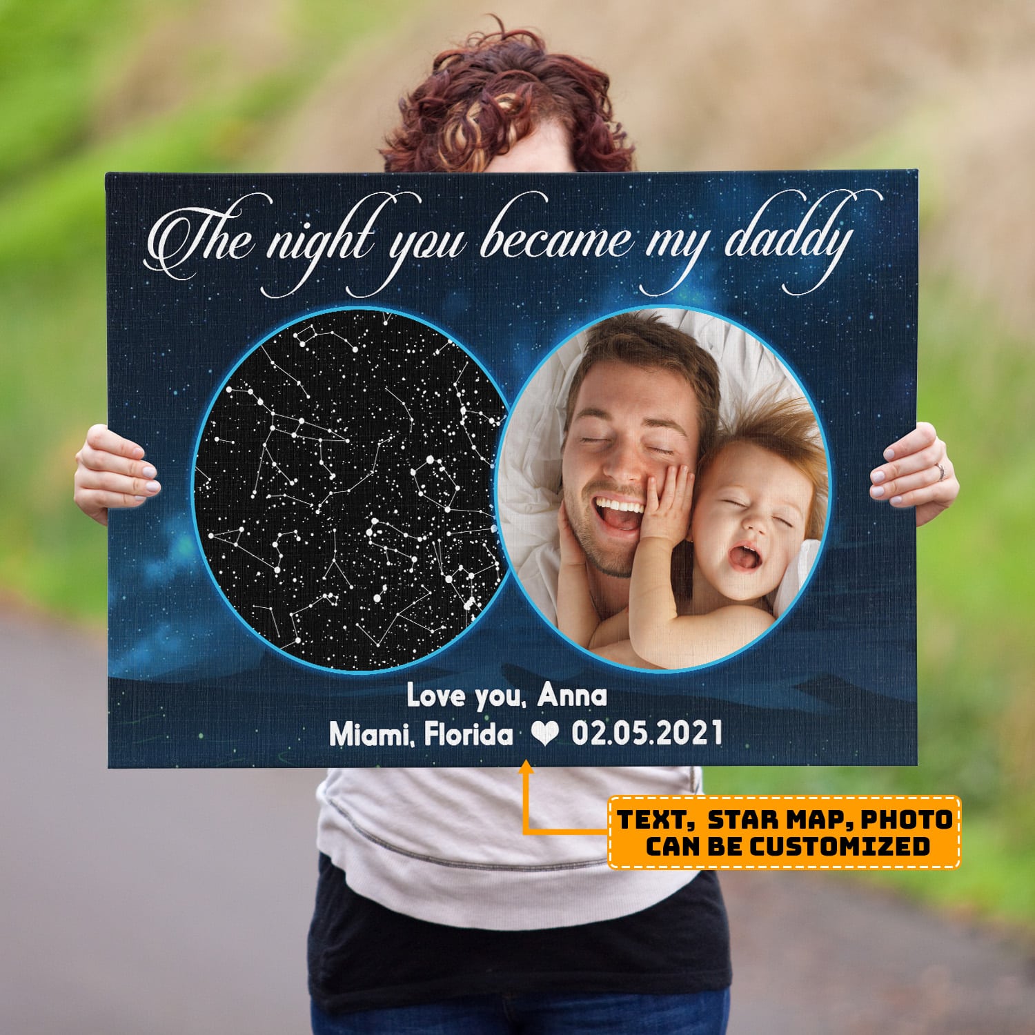 Let’s Shop The Night You Became My Daddy Personalized Star Map Photo Canvas – Custom Constellation Newborn Baby Name Gift Canvas Wall Art – Newly Parent Gift!