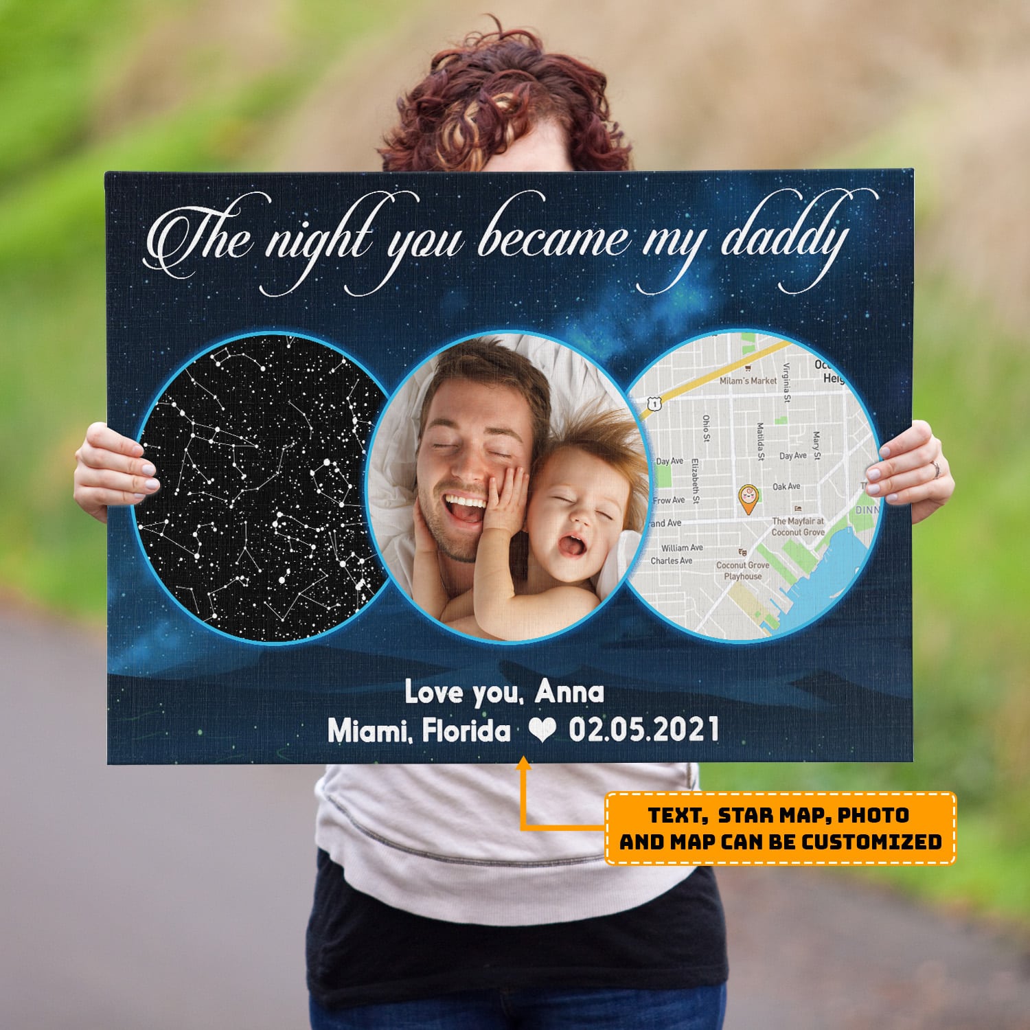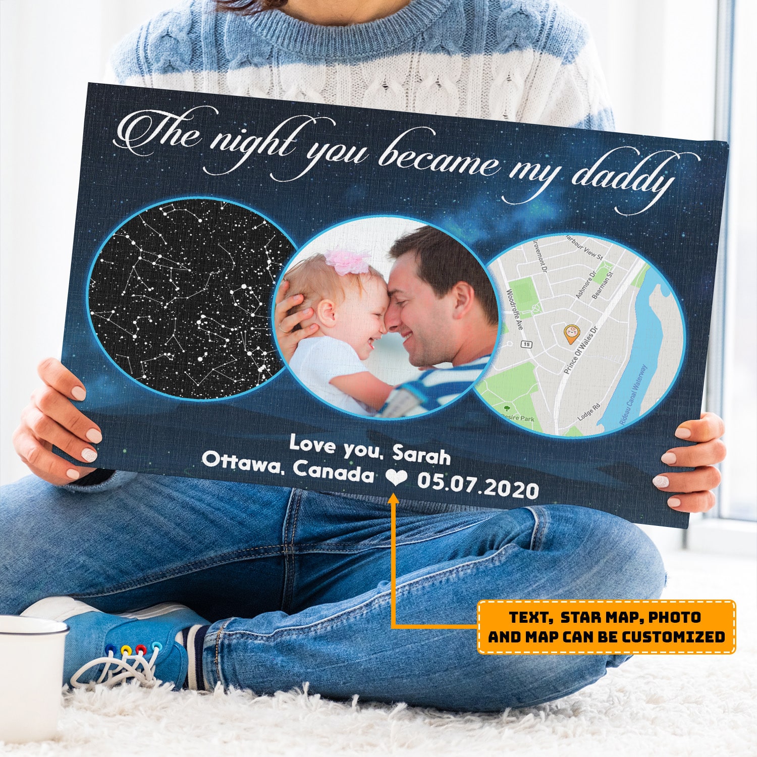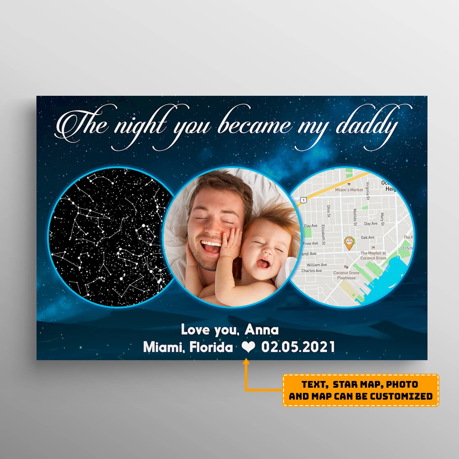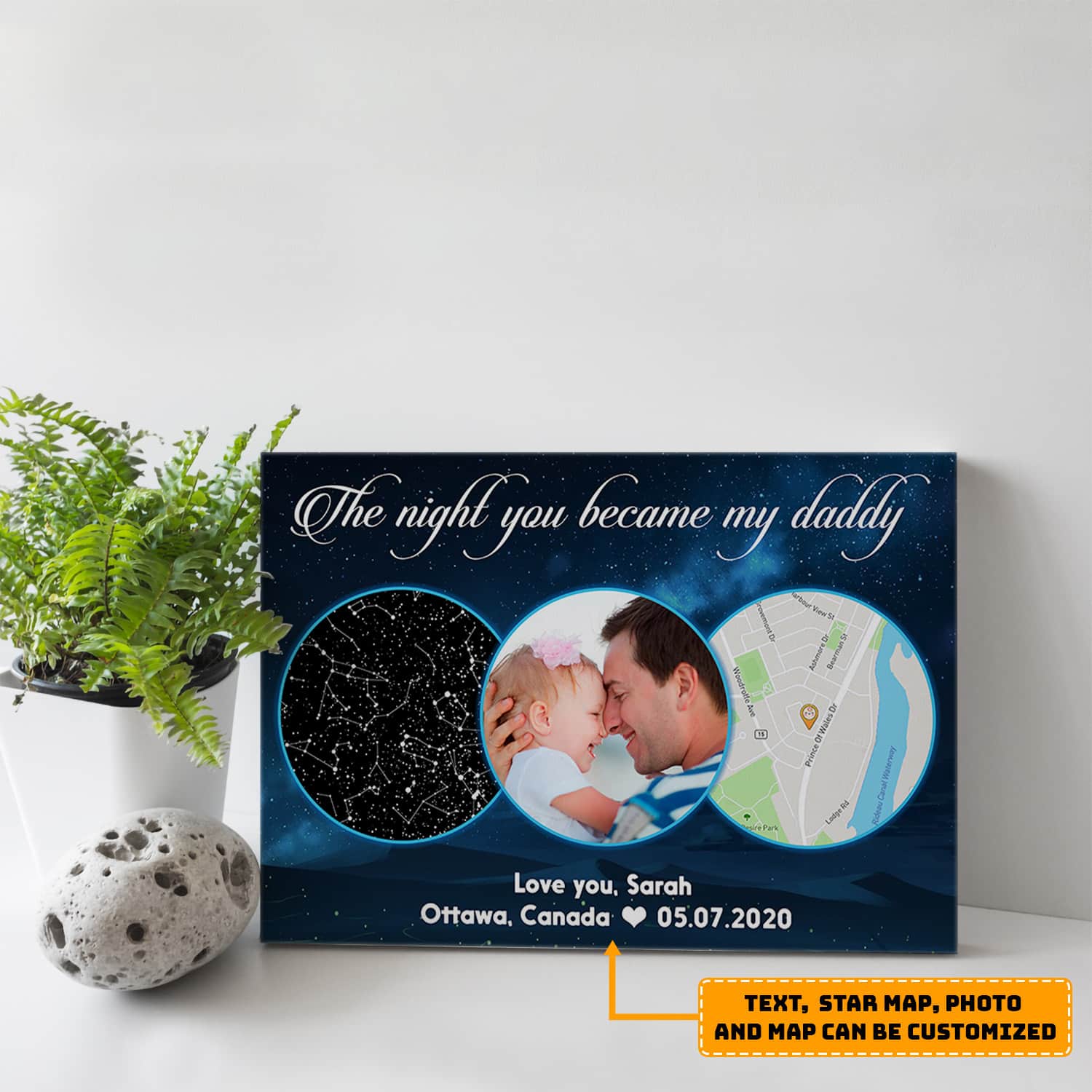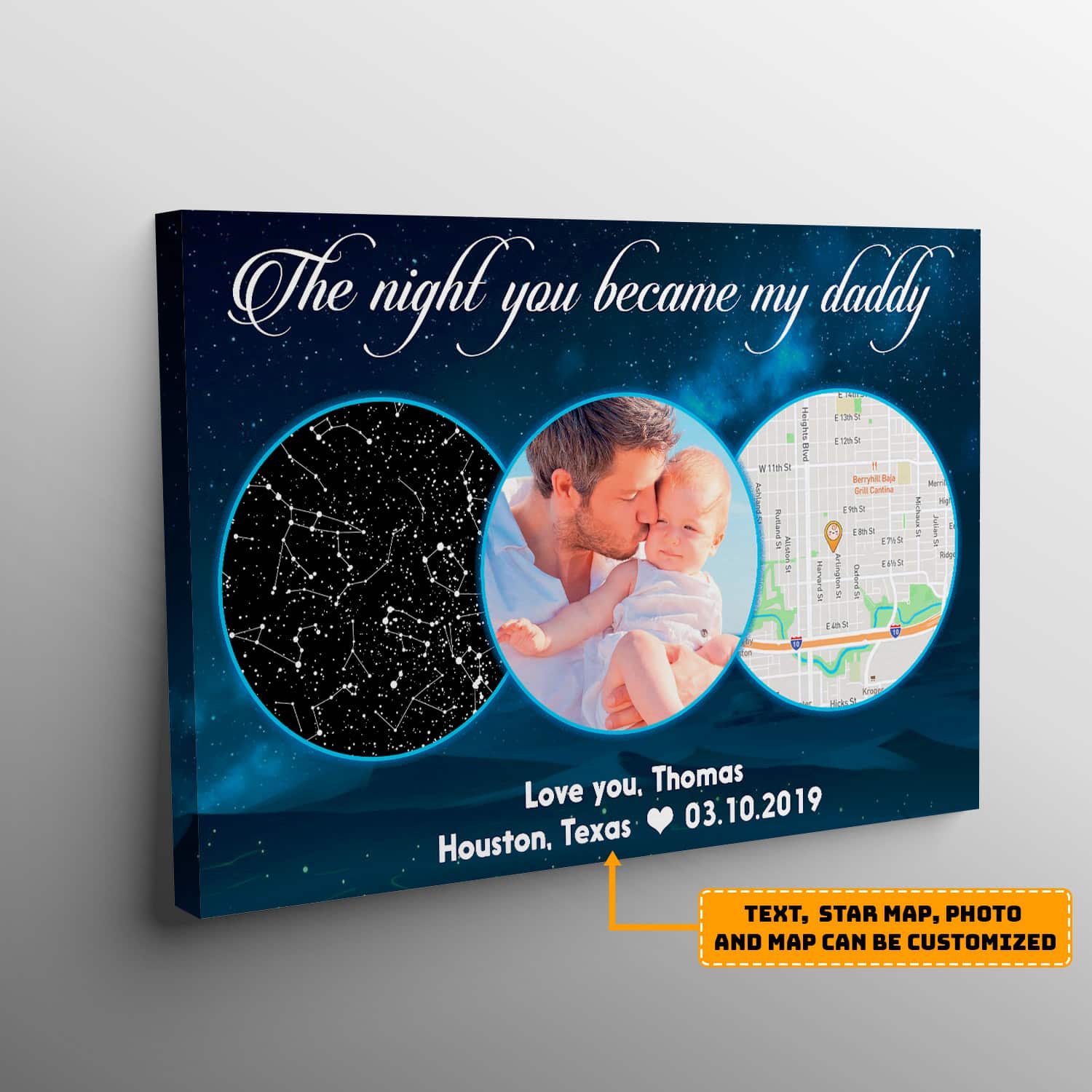 Let’s Shop The Night You Became My Daddy Personalized Star Map & Street Map Photo Canvas – Custom Image Constellation Newborn Baby Gift Canvas Wall Art!