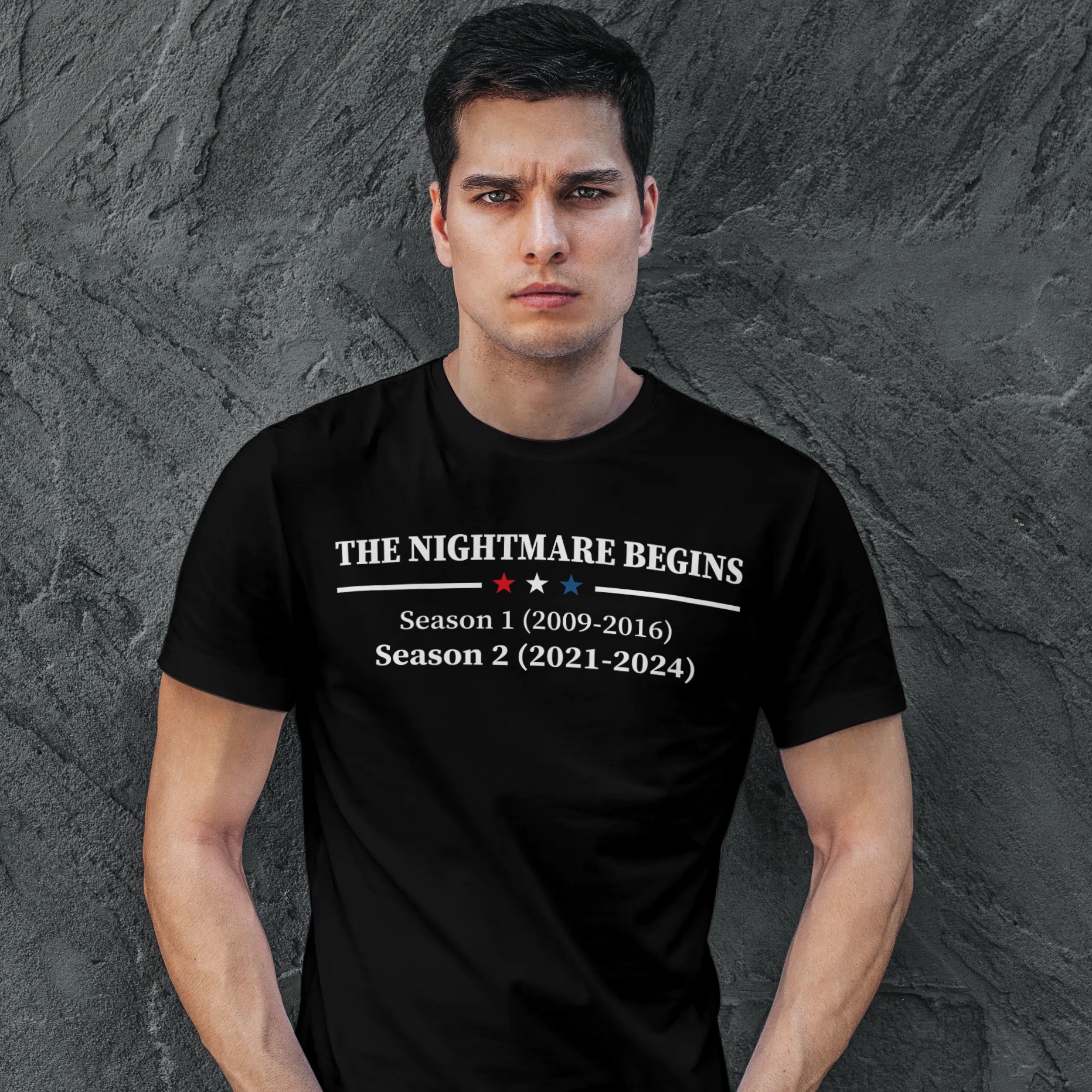 The Nightmare Begins Season 1 2008-2016 Season 2 2021-2024 Funny Election T-shirt - Inauguration Day Shirt, Black, Unisex T-Shirt