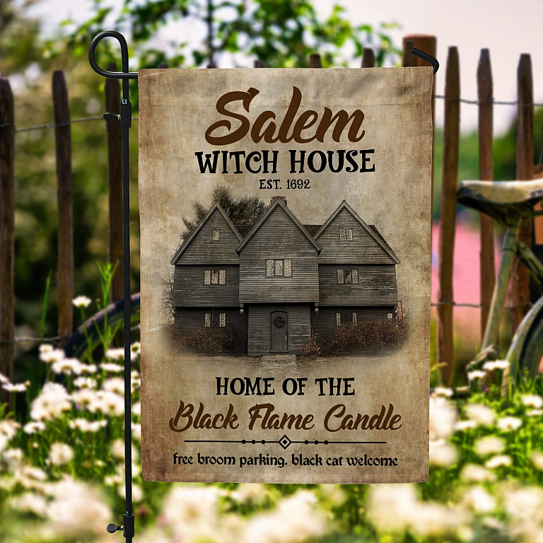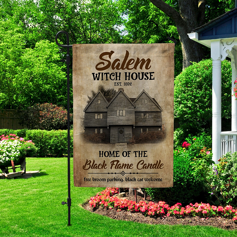 Let’s Shop Salem Witches House Est 1692 Home Of The Black Flame Candle Decorative Garden Flag – House Flag!