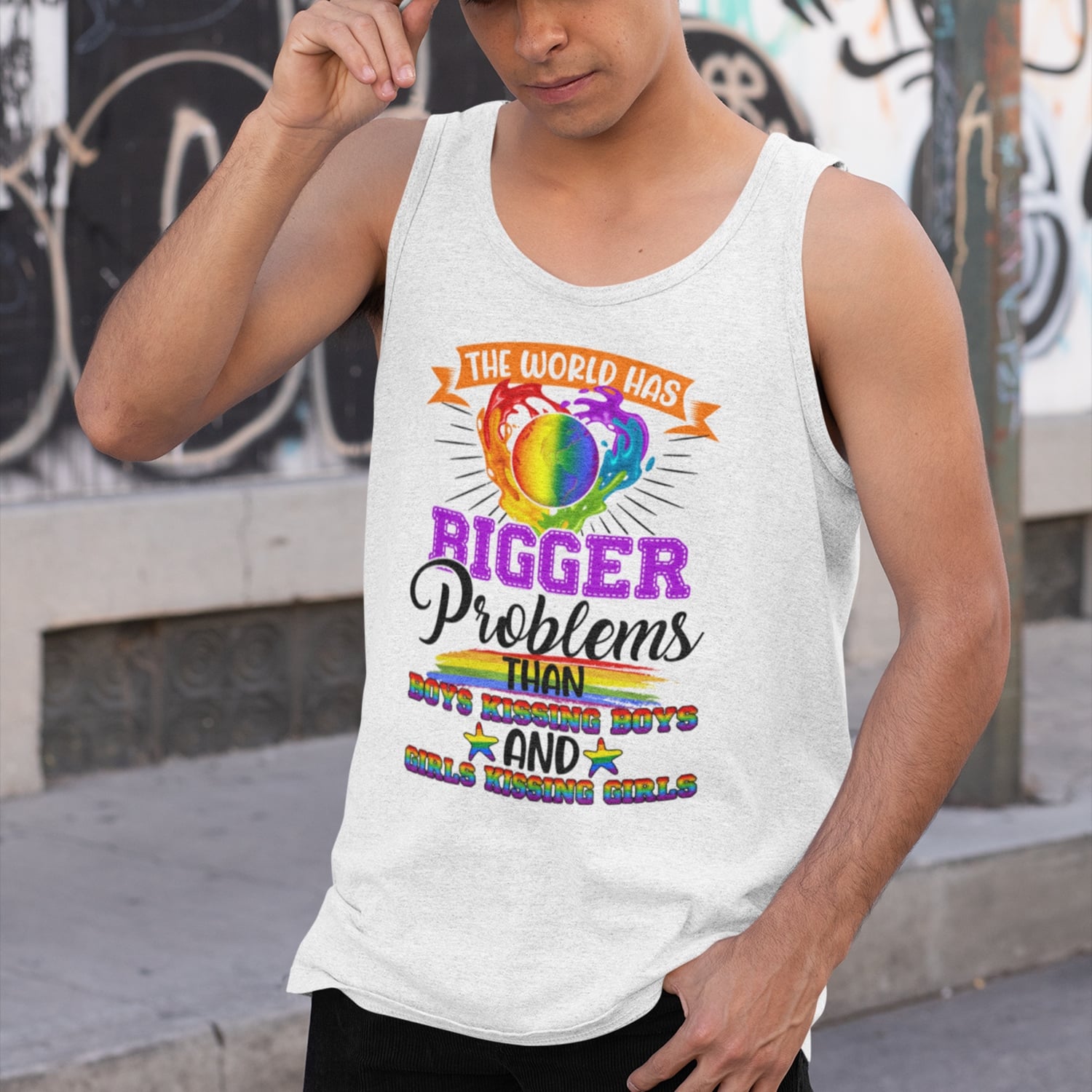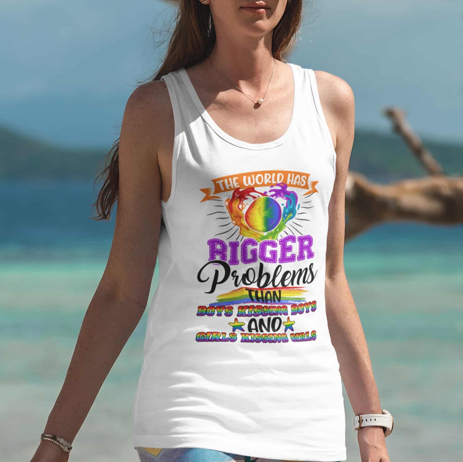 The World Has Bigger Problems Than Boys Kissing Boys And Girl Kissing Girl Tank Top Tee-Ladies Racerback Tank