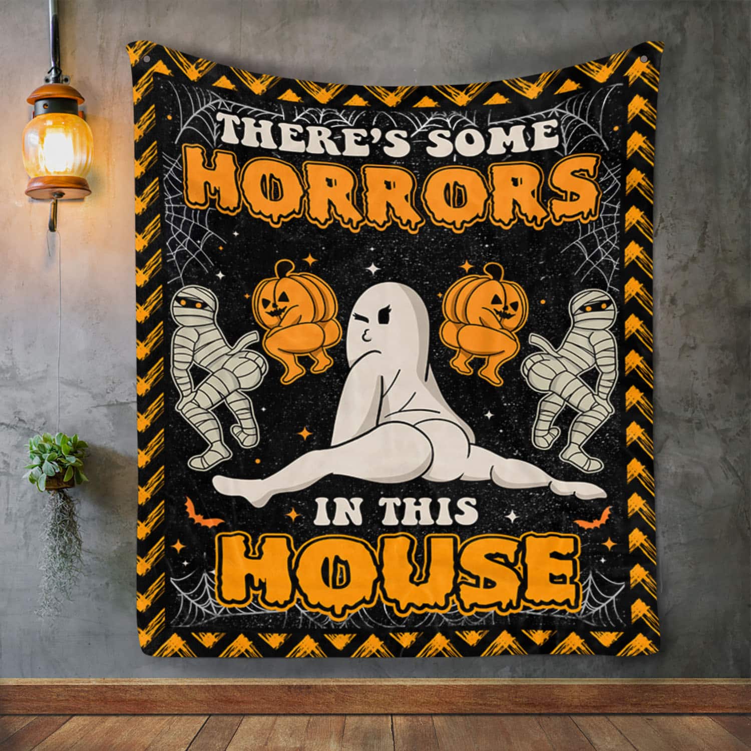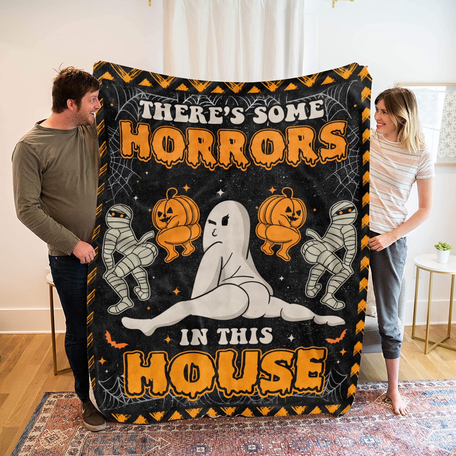 Let’s Shop There’s Some Horror In This House Funny Halloween Fleece Blanket – Sherpa Blanket – Halloween Blanket Gifts!