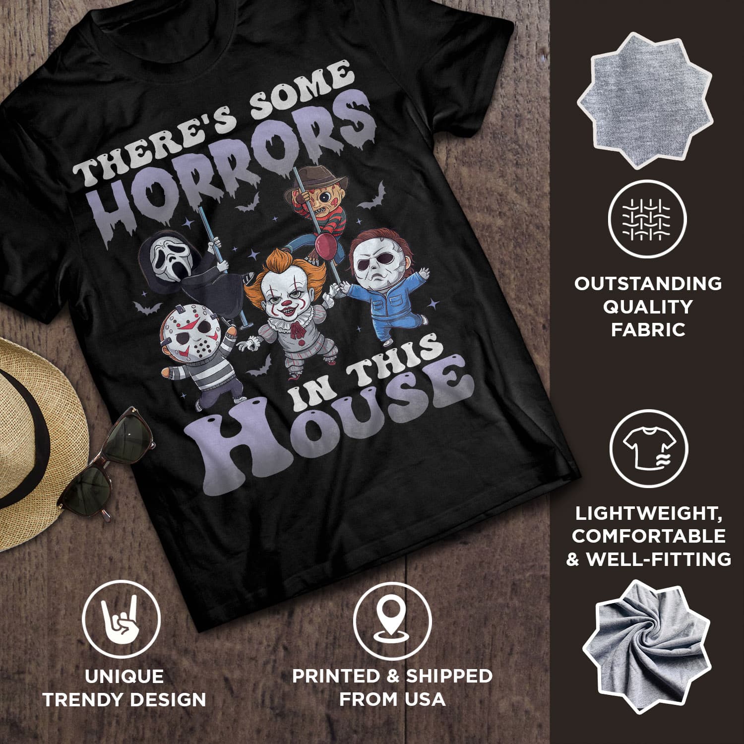 Are you spending too much time to find creative merchandise for you or suitable & special gifts for your mommy, your daddy, your son, your daughter, your children, your friends or someone you love? The struggle is over because we have various type of products such as There’s Some Horrors In This House Shirt, Funny Horror Characters T-Shirt, Funny Horror Characters Shirt, There’s Some Horrors In This House Tee, Halloween Shirt, Funny Halloween Shirt which will make perfect presents for your beloveds. In order to make your present stand out, we have created lots of unique and awesome customized photo gifts & personalized designs.