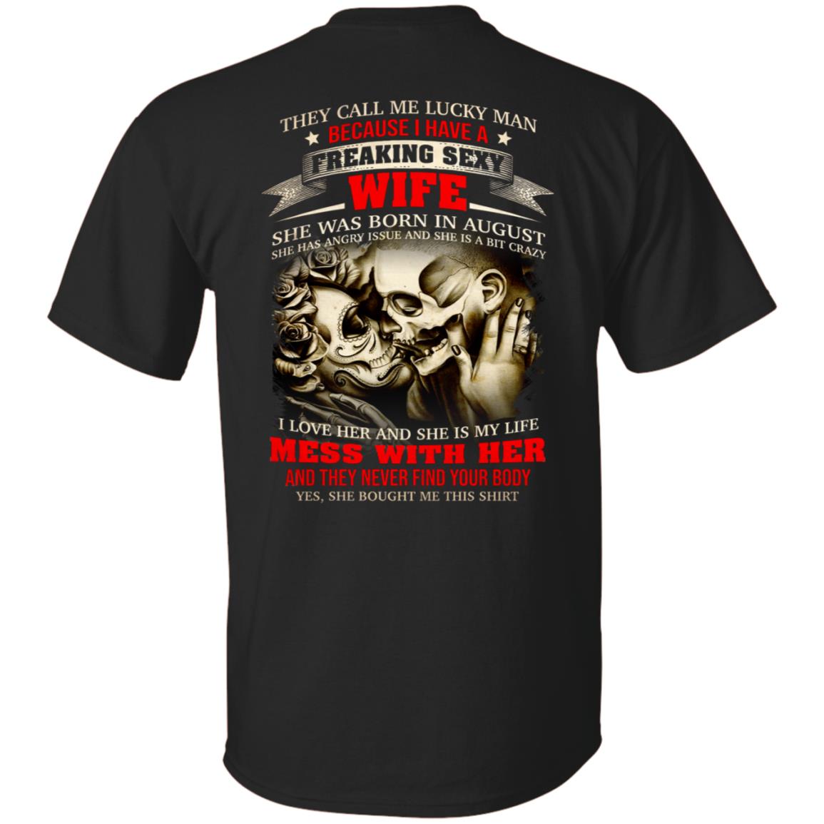 They Call Me Lucky Man Because I Have A Freaking Sexy Wife She was Born in August Print On Back T-Shirt