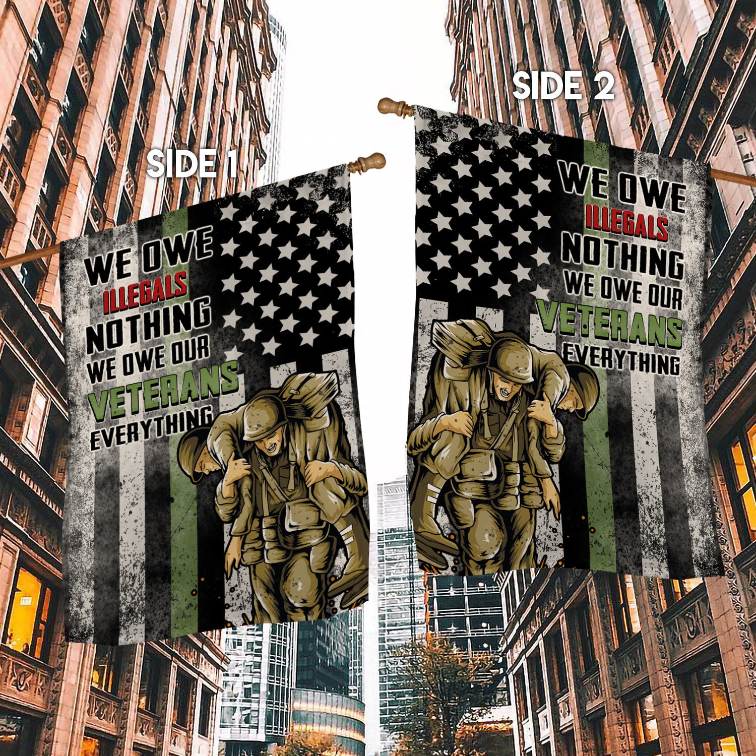 Let’s Shop We Own Illegals Nothing We Owe Our Veterans Everything Thin Green Line Outdoor Indoor Decorative Garden Flag – House Flag – Wall Flag!