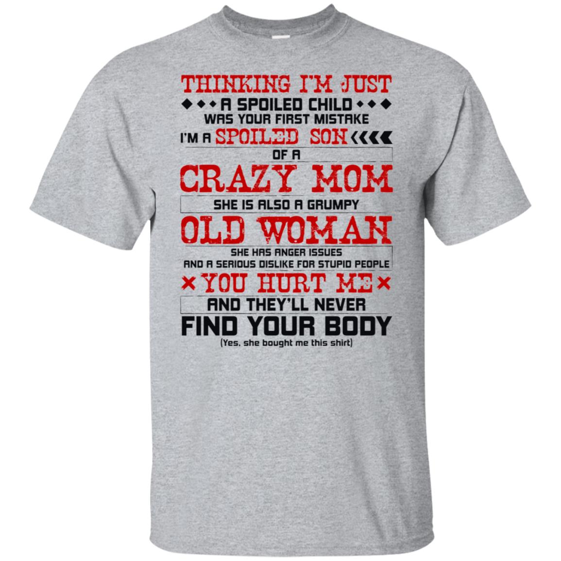 Thinking I'm Just A Spoiled Child Has Your First Mistake I'm a Spoiled Son Of Crazy Mom T-Shirt