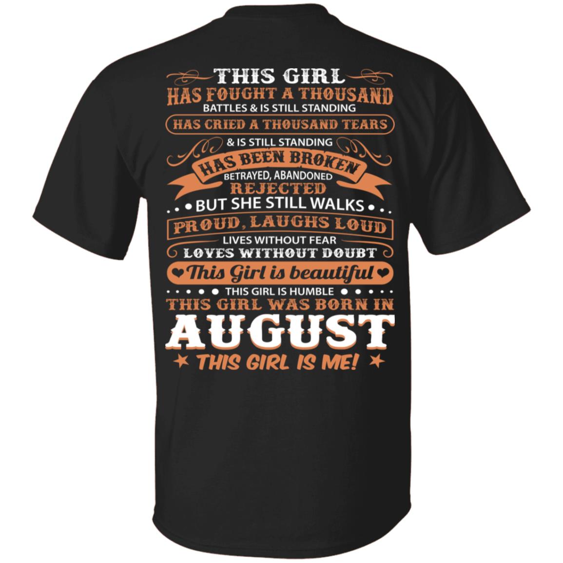 This Girl Has Fought A Thousand Battles And Cried Thousand Tears was Born in August Print On Back T-Shirt