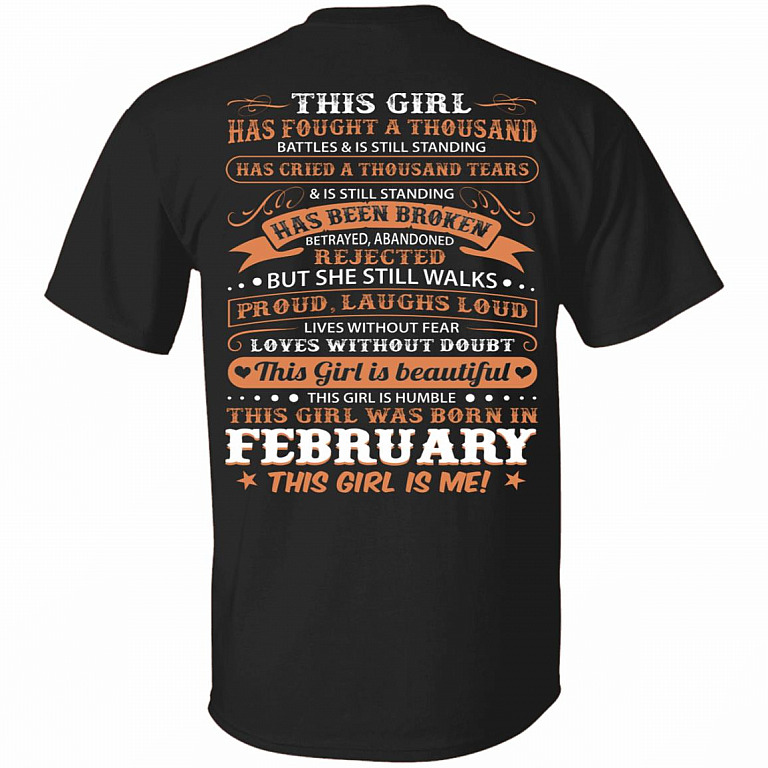 This Girl Has Fought A Thousand Battles And Cried Thousand Tears was Born in February Print On Back T-Shirt
