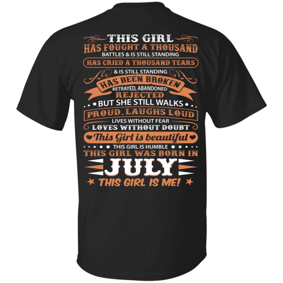 This Girl Has Fought A Thousand Battles And Cried Thousand Tears was Born in July Print On Back T-Shirt