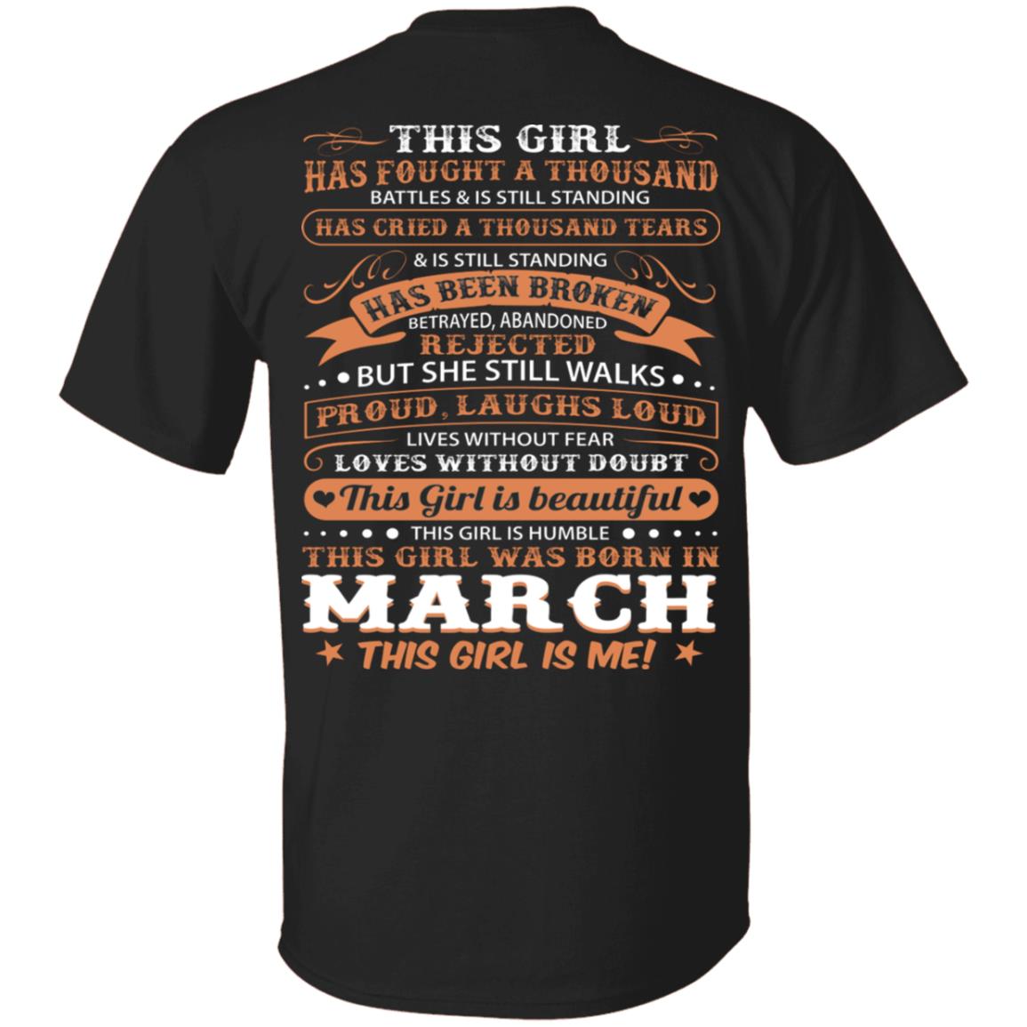 This Girl Has Fought A Thousand Battles And Cried Thousand Tears was Born in March Print On Back T-Shirt