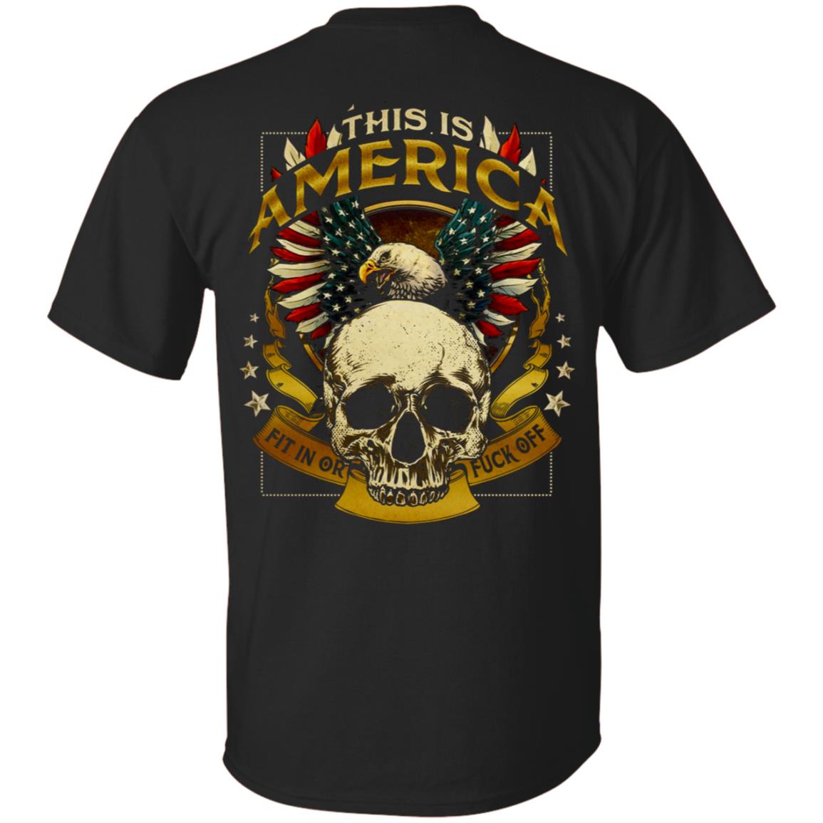 This Is America Fit In Or Fu-ck Off Print On Back T-Shirt