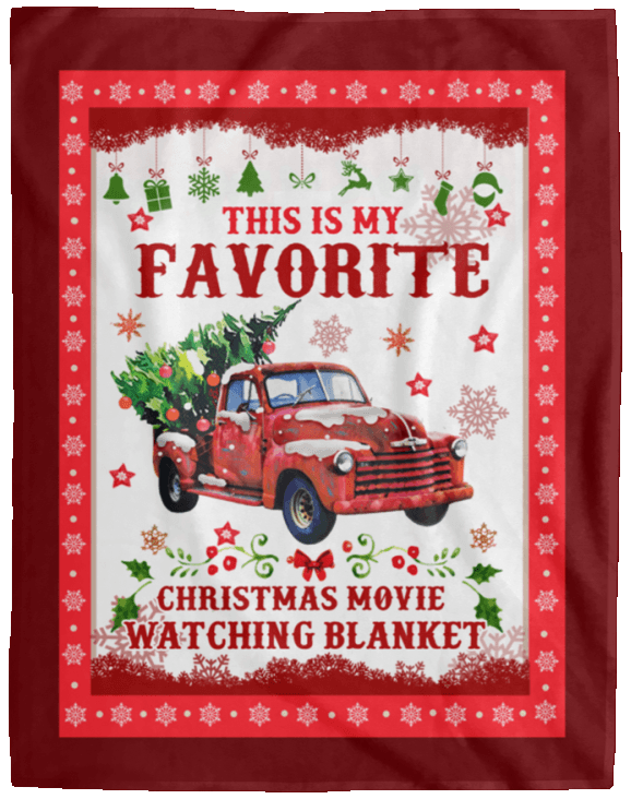 Shop This Is My Favorite Christmas Movie Watching Fleece Blanket – Red Truck Merry Xmas Tree Sherpa Woven Blanket.