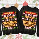 Are you spending too much time to find creative merchandise for you or suitable & special gifts for your mommy, your daddy, your son, your daughter, your children, your friends or someone you love? The struggle is over because we have various It’s Too Hot for Ugly Christmas Shirt, Ugly Christmas Sweater Shirt, This Is My Ugly Christmas Sweaters Shirt which will make perfect presents for your beloveds. In order to make your present stand out, we have created lots of unique and awesome customized photo gifts & personalized designs.