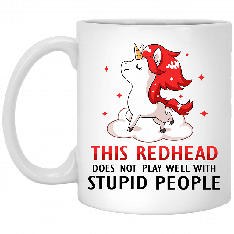 This Redhead Does Not Play Well With Stupid People Ceramic Coffee Mug – Beer Stein -Water Bottle – Color Changing Mug