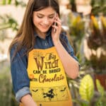Let’s Shop This Witch Can Be Bribed With Chocolate Funny Halloween Witch Cooking Apron With 3 Pockets!