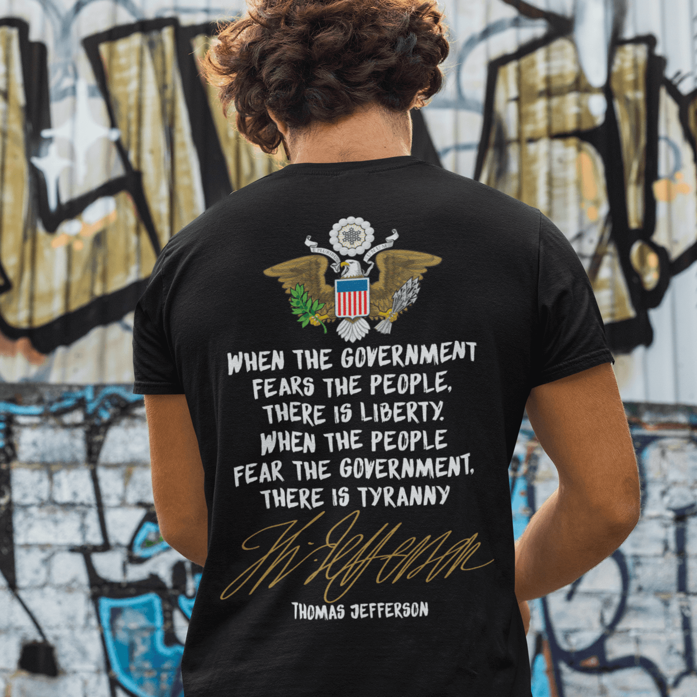 Thomas Jefferson Liberty Tyranny 2nd Second Amendment Rights Patriotic American Print On Back Only T-shirt, Black, Unisex T-Shirt