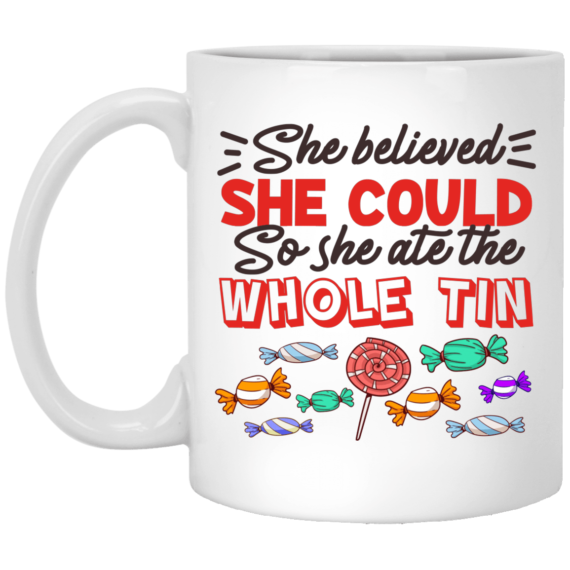 Shop She Believed She Could So She Ate the Whole Tin Ceramic Coffee Mug – Beer Stein – Water Bottle.