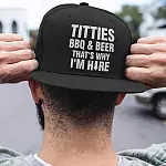 Let’s Shop Titties BBQ And Beer That’s Why I’m Here Twill Cap – High-Profile Snapback Hat – Beer Lover Trucker Hat!