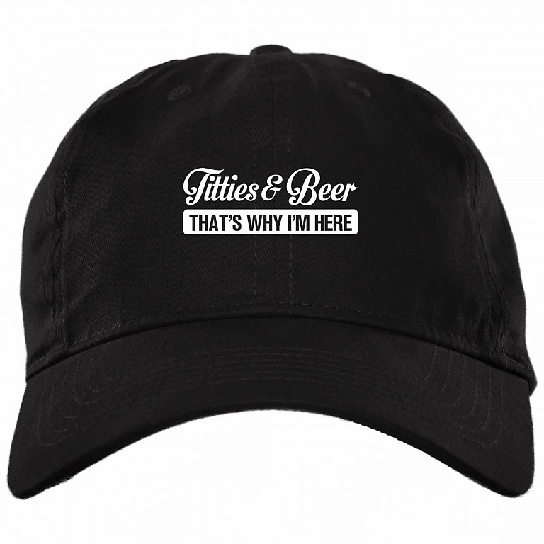Shop Titties and Beers That’s Why I’m Here Twill Cap – High-Profile Snapback -Trucker Hat.