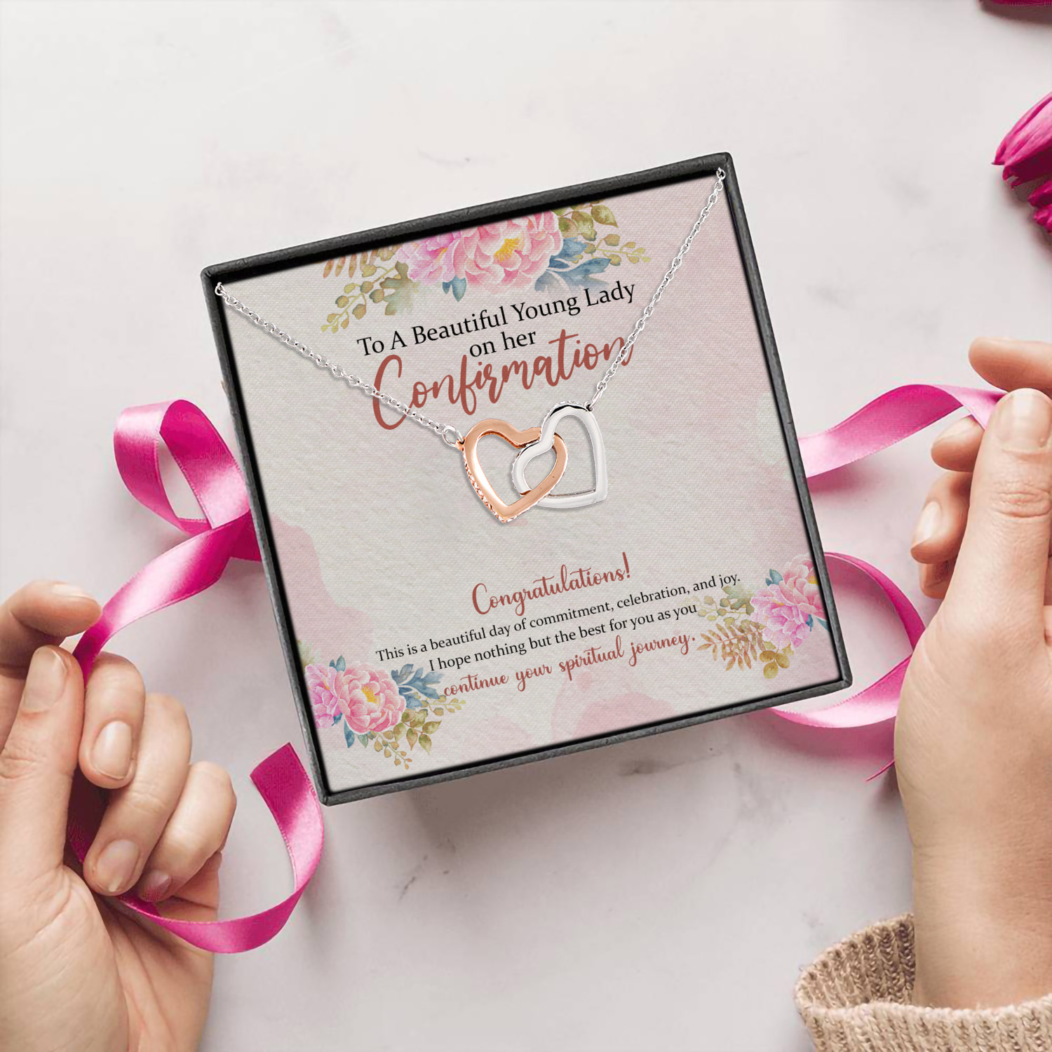 Let’s Shop To A Beautiful Young Lady On Her Confirmation Congratulations Confirmation Interlocking Hearts Pendant Necklace!