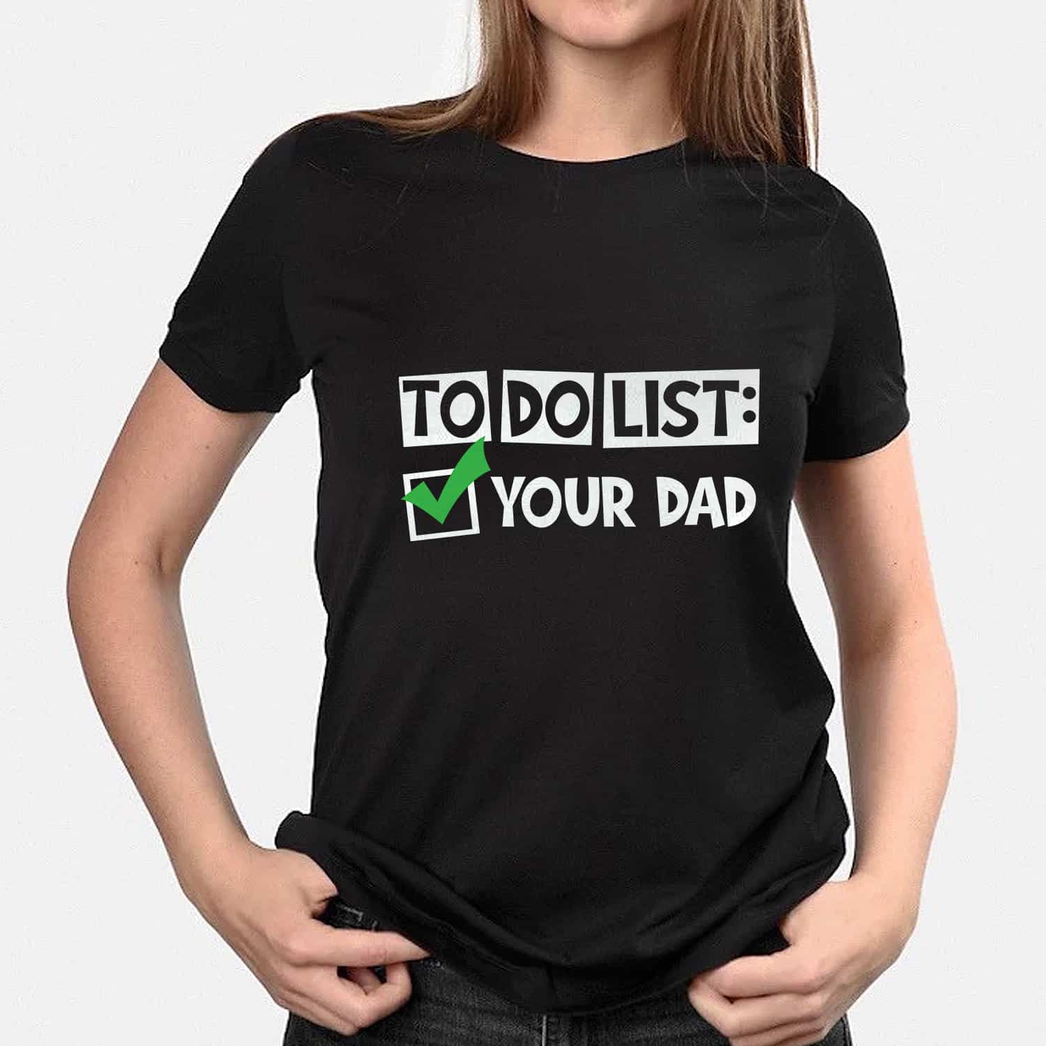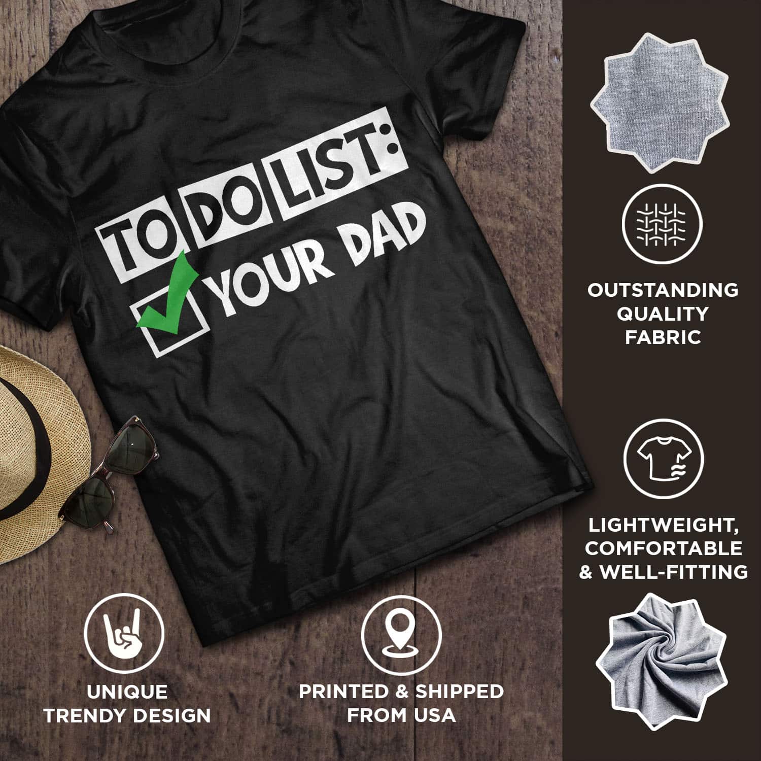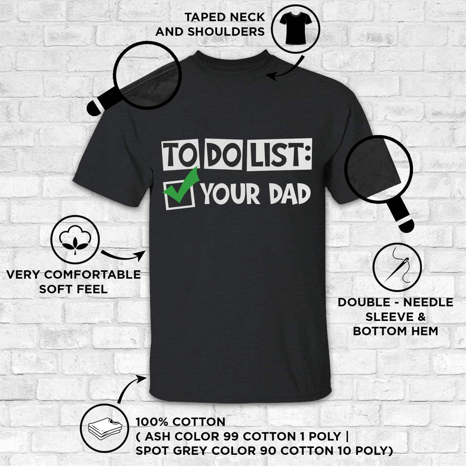 Are you spending too much time to find creative merchandise for you or suitable & special gifts for your mommy, your daddy, your son, your daughter, your children, your friends or someone you love? The struggle is over because we have various To Do List Your Dad, Funny Shirts, Sarcastic Tshirts, Mom Shirts, Dad Shirts, Funny Birthday Gifts, Birthday Shirts, Funny Mom Shirts, Mothers Day Shirts, Womens Funny Shirts, Mothers Day Shirt, Mothers Day 2023, Unisex Sarcastic Tee which will make perfect presents for your beloveds. In order to make your present stand out, we have created lots of unique and awesome customized photo gifts & personalized designs.