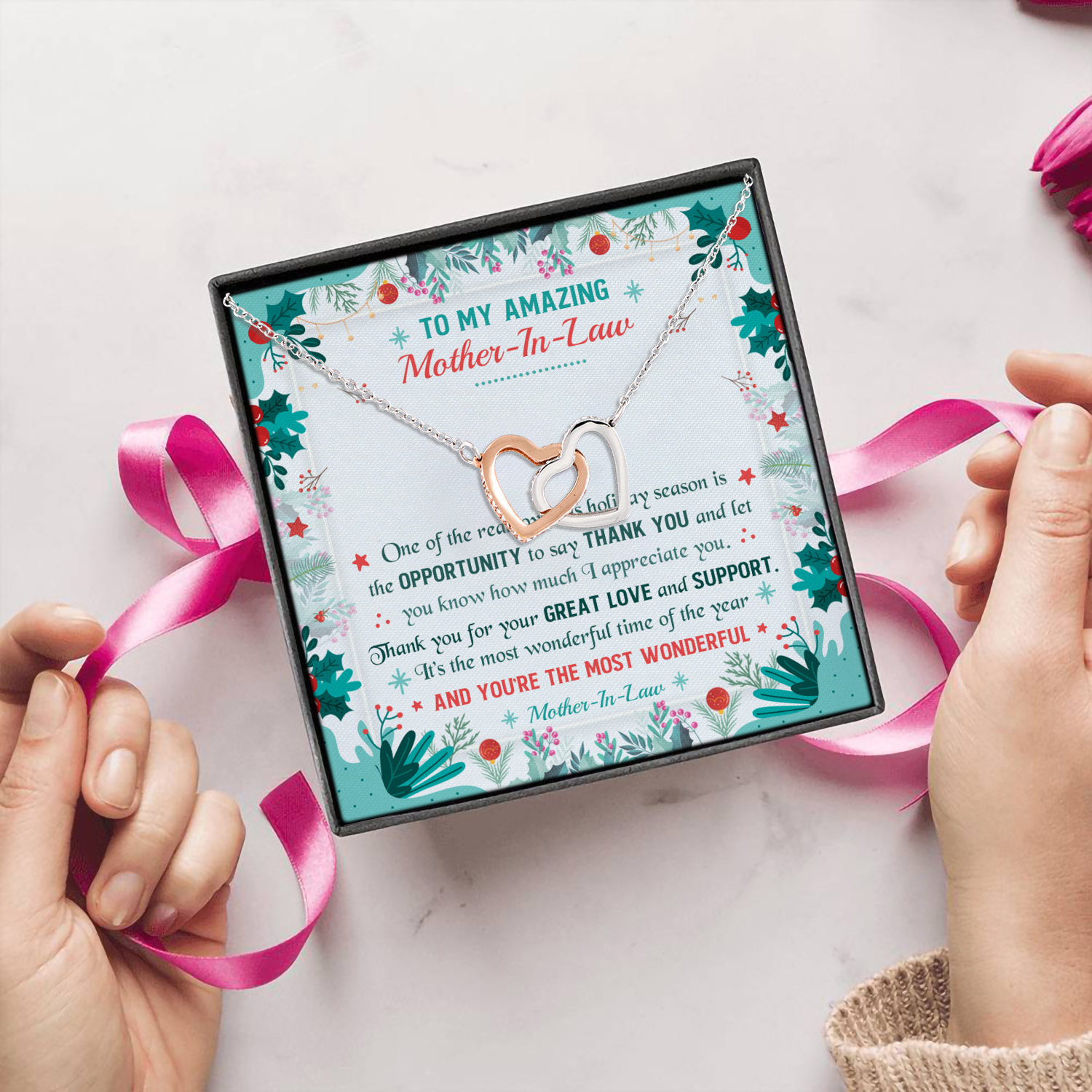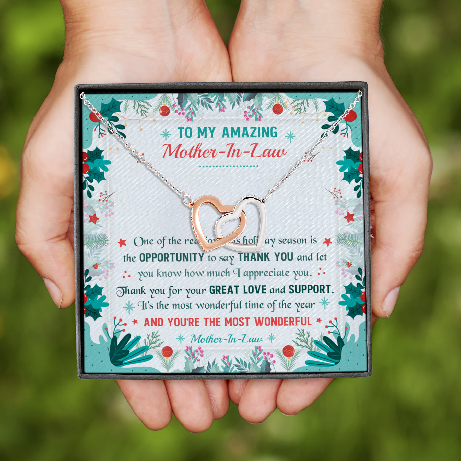 Let’s Shop Thank You Gifts To My Amazing Mother-In-Law Interlocking Hearts Christmas Necklace!