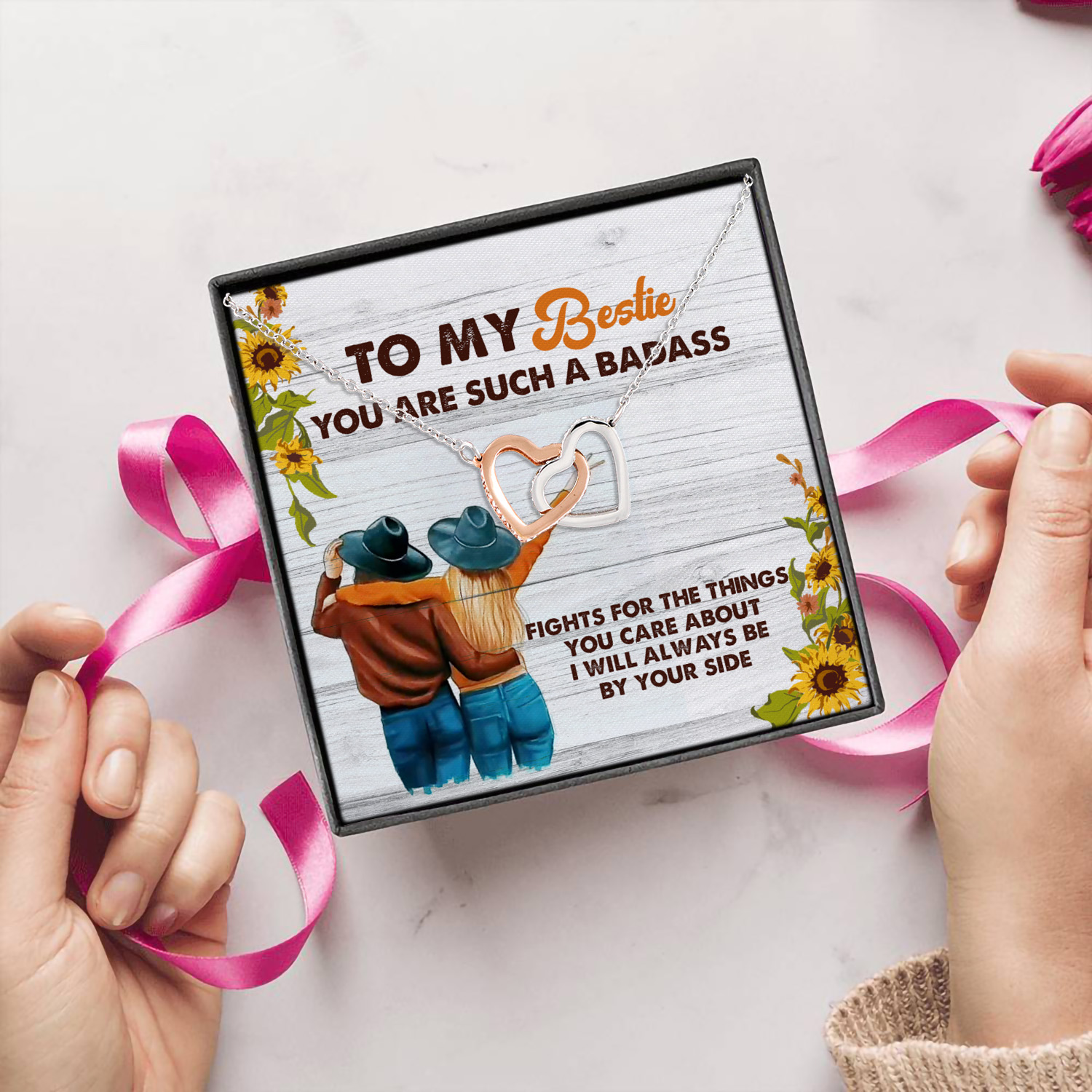 Let’s Shop To My Badass Bestie Thank You For Being My Unbiological Soul Sister Interlocking Hearts Necklace!