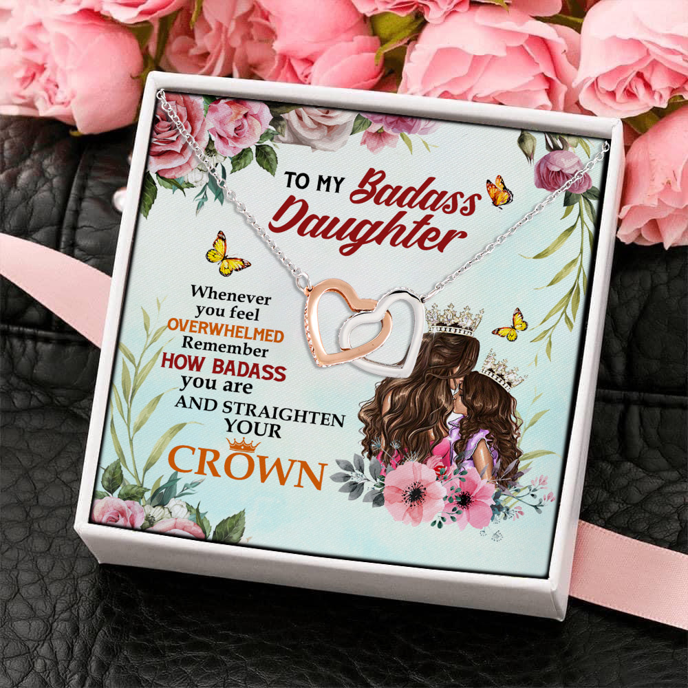 Let’s Shop To My Badass Daughter Whenever You Feel Overwhelmed Remember Straighten Your Crown Interlocking Hearts Pendant Necklace!