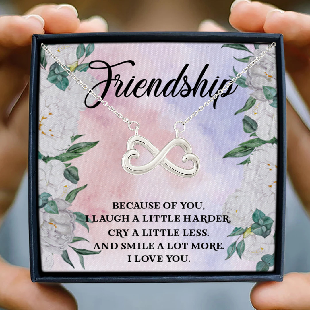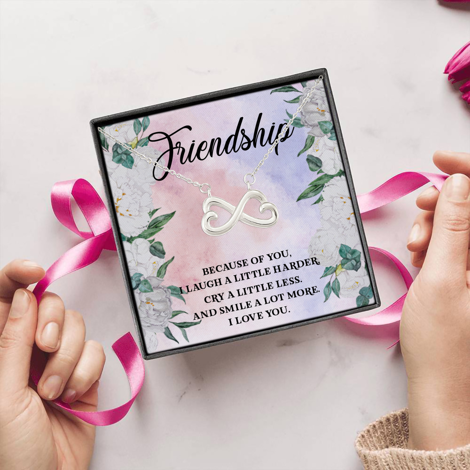 Let’s Shop Friendship Because Of You I Laugh A Little Harder Cry A Little Less And Smile Infinity Heart Pendant Necklace!