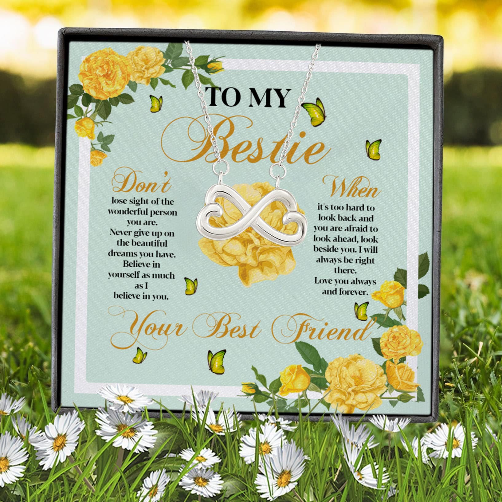 Let’s Shop To My Bestie Don’t Lose Sight Of The Wonderful Person You Are Infinity Heart Pendant Necklace!