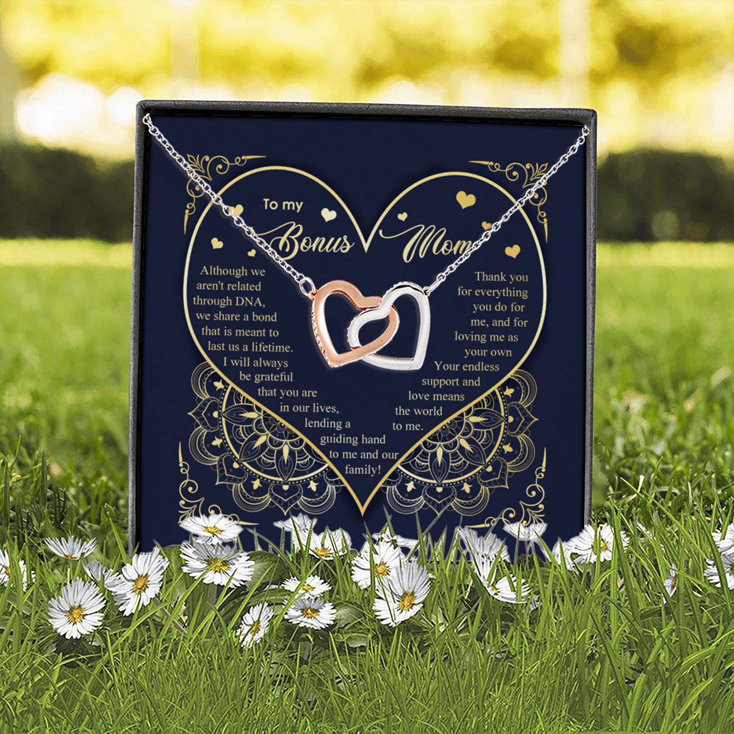 Let’s Shop To My Bonus Mom Although We Aren’t Related Through D N A – Bonus Mom Gifts – Joined Interlocking Hearts Necklace!