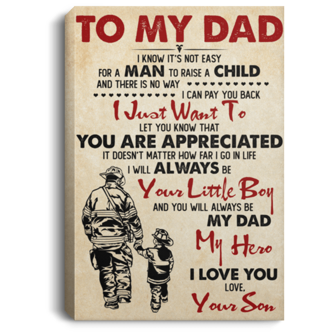 Are you spending too much time to find creative merchandise for you or suitable gifts for your friends, your mommy, your daddy, your children or someone you love? The struggle is over because we have various To My Dad Poster, To My Dad Sign, To My Dad Canvas, To My Dad Wall Decor, To My Dad Art, To My Dad Decor, Firefighter Dad Canvas, Firefighter Dad Poster, To My Firefighter Dad Canvas Poster, Proud Firefighter Dad GIft, Gift For Firefighter Dad, Gift For Firefighter which will make perfect presents for your beloveds. In order to make your present stand out, we have created lots of unique and awesome customized designs.