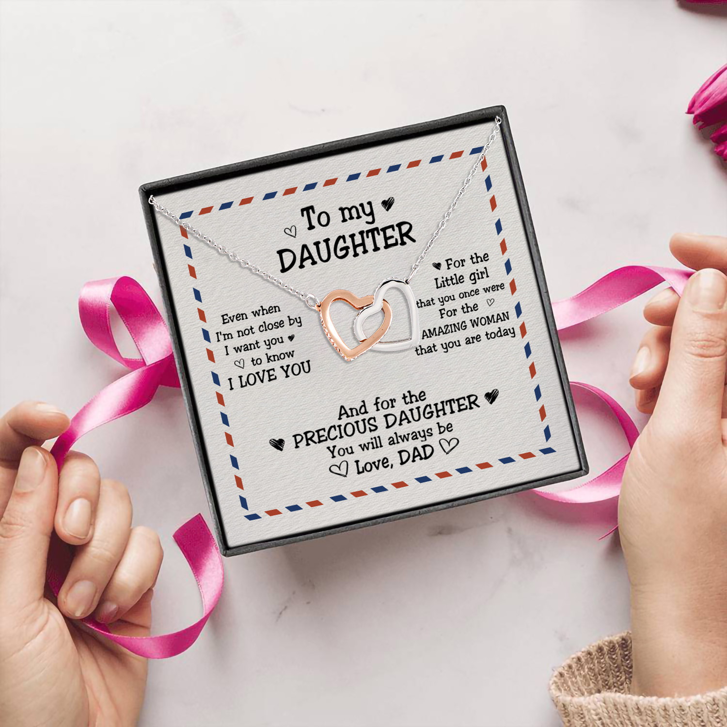 Let’s Shop Gift To My Daughter From Dad Even When I Am Not Close By Interlocking Hearts Pendant Necklace!