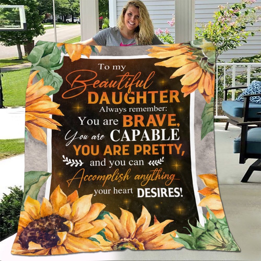 Are you spending too much time to find creative merchandise for you or suitable & special gifts for your mommy, your daddy, your son, your daughter, your children, your friends or someone you love? The struggle is over because we have various To My Beautiful Daughter Always Remember that You Are Brave, to My Daughter Blanket from Mom, to My Daughter Blanket Love Mom, Daughter Blanket from Mom, Daughter Sunflower Gift, Sunflower Blanket to My Daughter, to My Daughter Blanket, to My Daughter Blanket which will make perfect presents for your beloveds. In order to make your present stand out, we have created lots of unique and awesome customized photo gifts & personalized designs.
