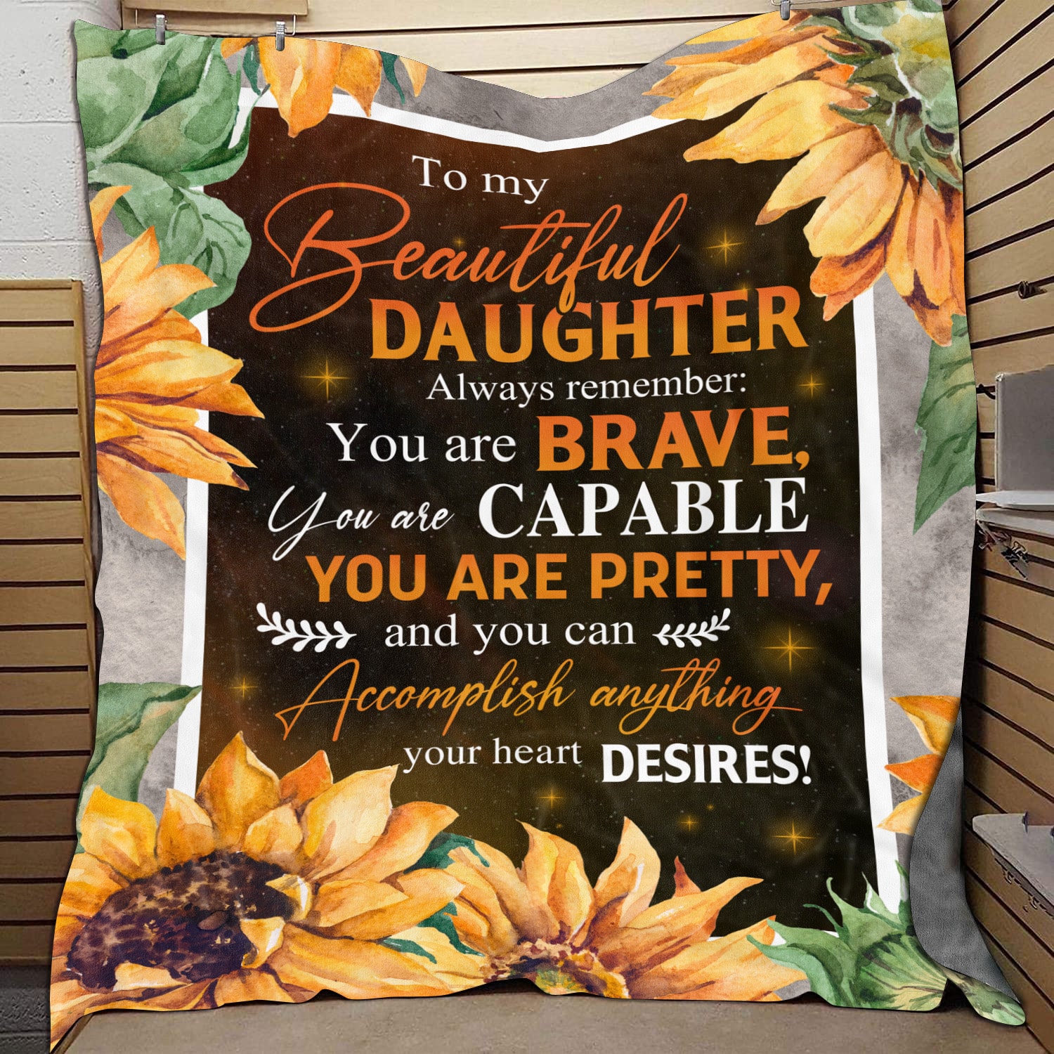 Let’s Shop To My Beautiful Daughter Always Remember that You Are Brave Sunflower Fleece Blanket – Mink Sherpa Blanket – Woven Blanket!