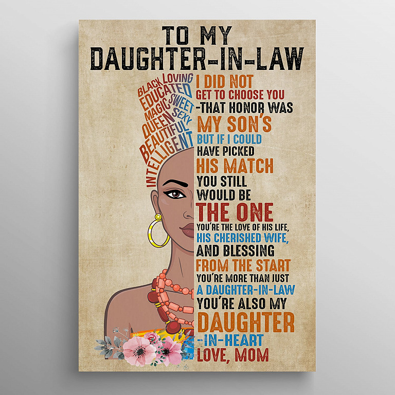 Are you spending too much time to find creative merchandise for you or suitable & special gifts for your mommy, your daddy, your son, your daughter, your children, your friends or someone you love? The struggle is over because we have various To My Daughter in Law Canvas, to My Afro Daughter in Law Canvas, Black Loving Daughter in Law Canvas, Afro Daughter in Law Poster, You’re Also My Daughter in Heart Canvas, to My Daughter in Law Canvas Art, to My Daughter in Law Wall Art which will make perfect presents for your beloveds. In order to make your present stand out, we have created lots of unique and awesome customized photo gifts & personalized designs.