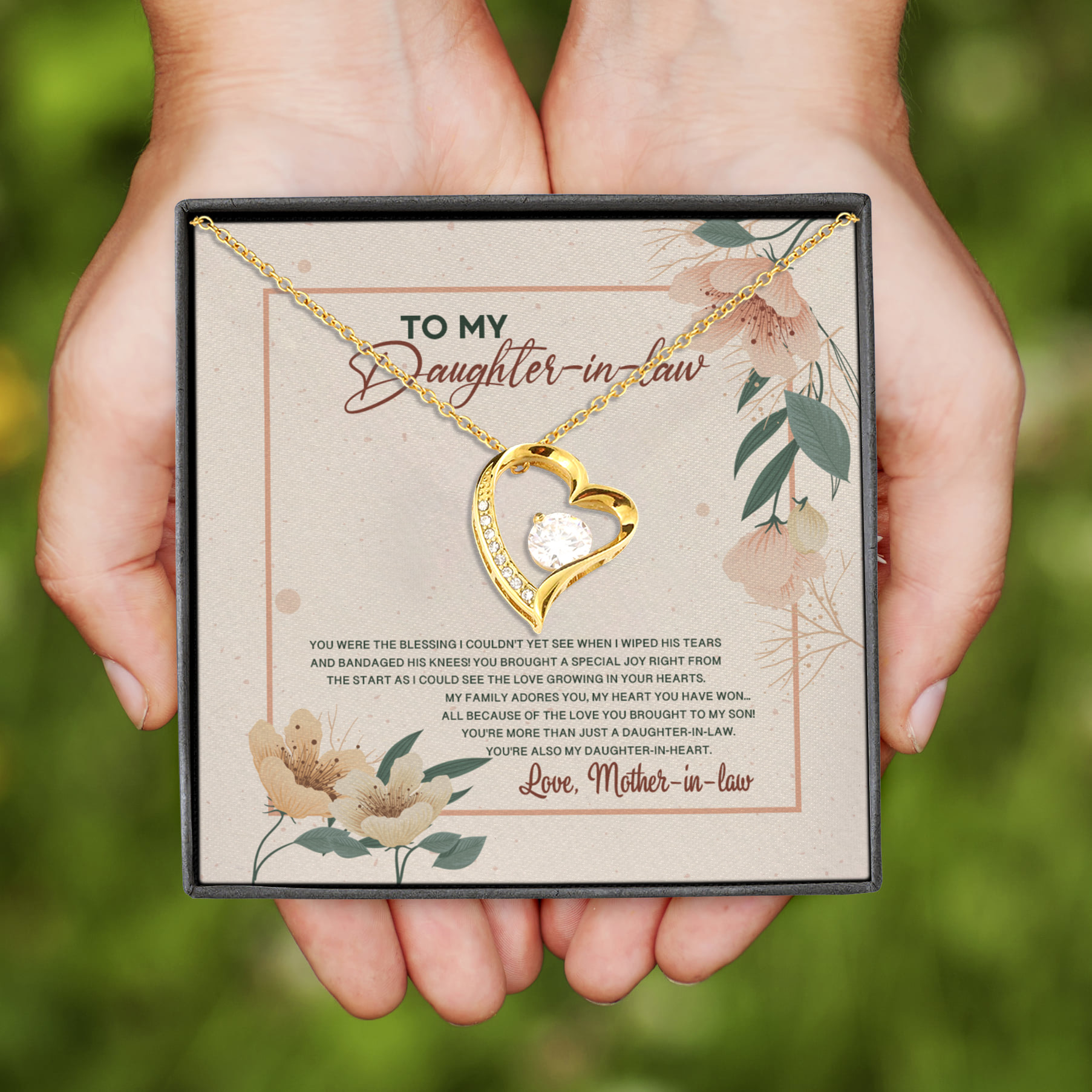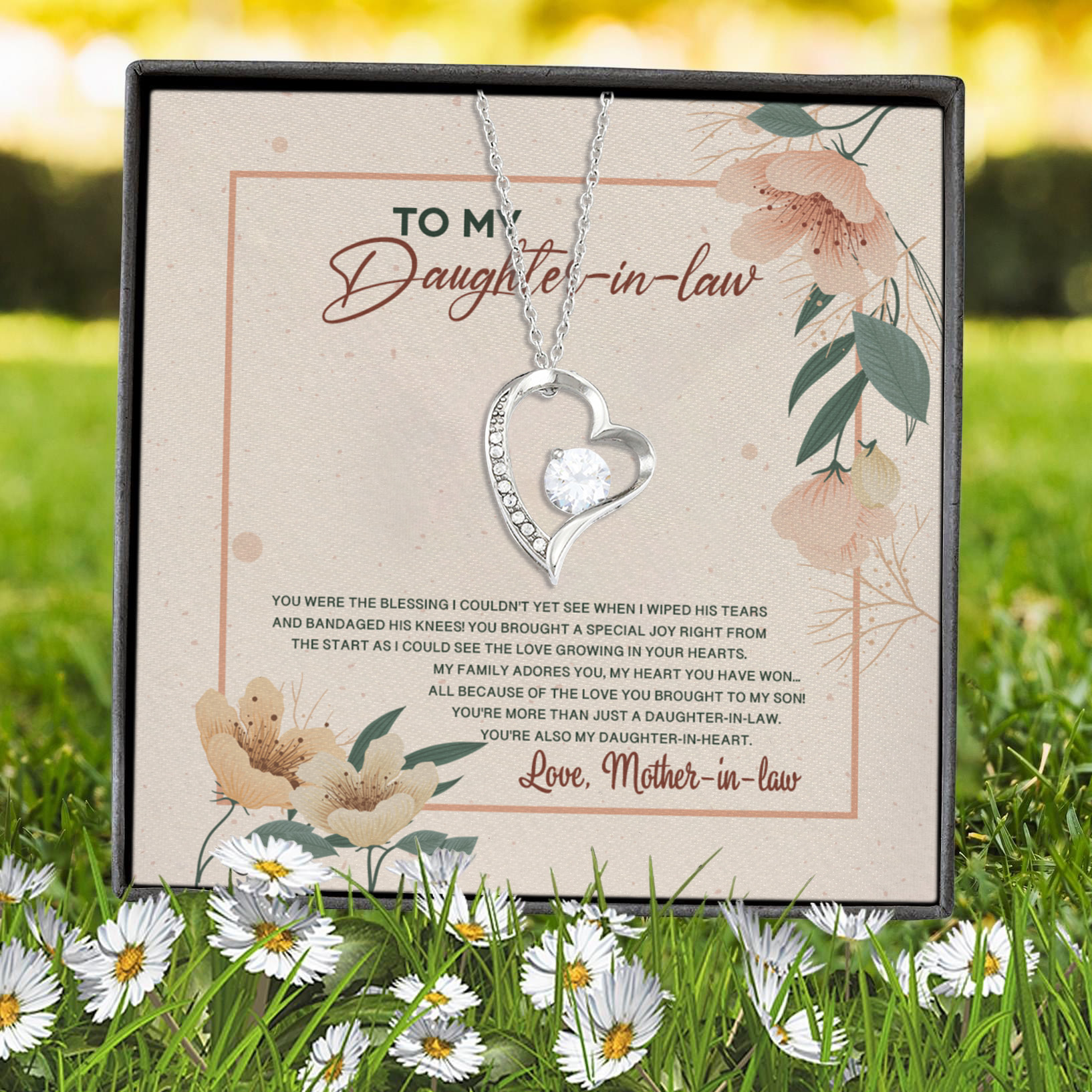 Let’s Shop To My Daughter In Law You Were The Blessing I Couldn’t Yet See When I Wiped His Tears Forever Love Heart Necklace!
