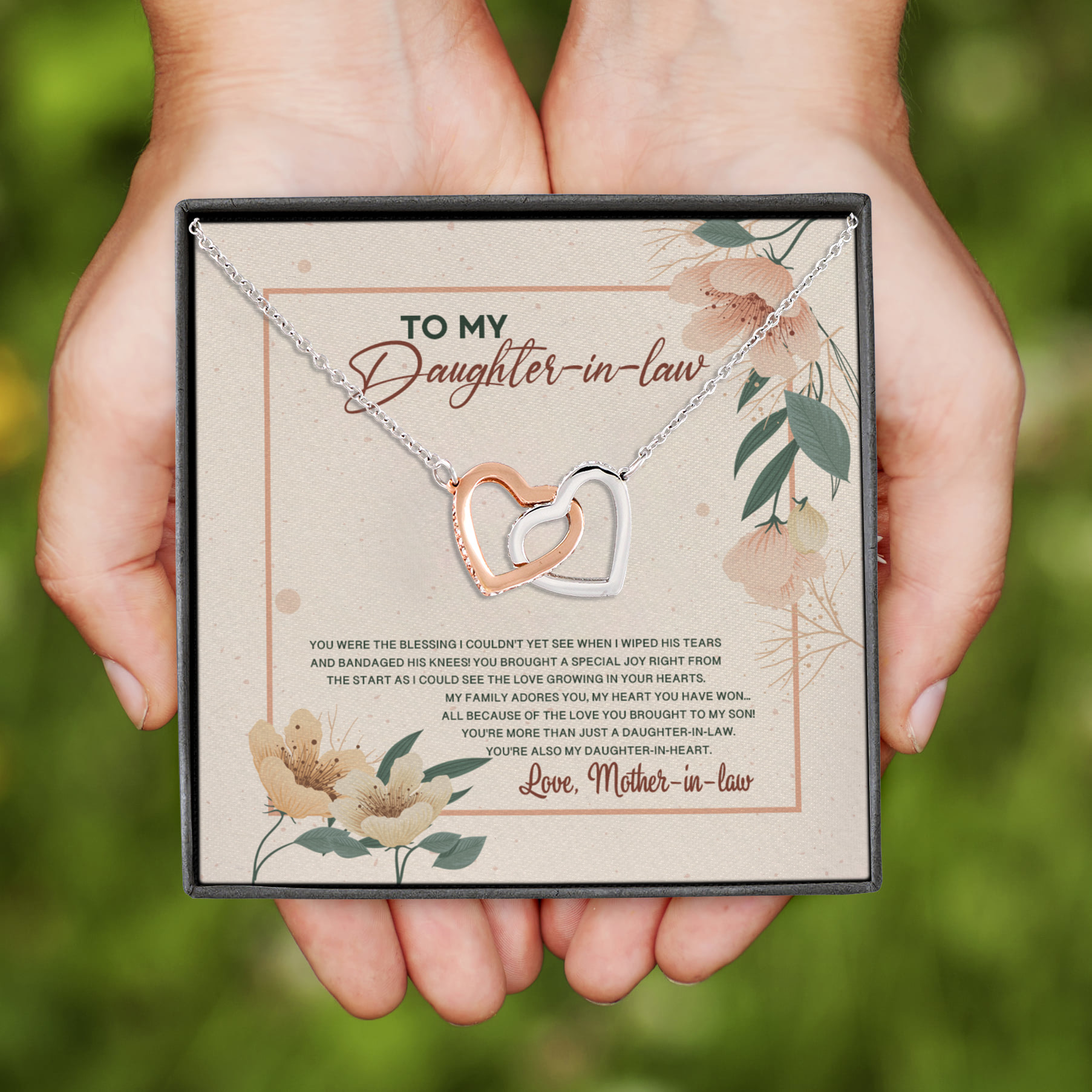 Let’s Shop To My Daughter In Law You Were The Blessing I Couldn’t Yet See When I Wiped His Tears Interlocking Heart Necklace!