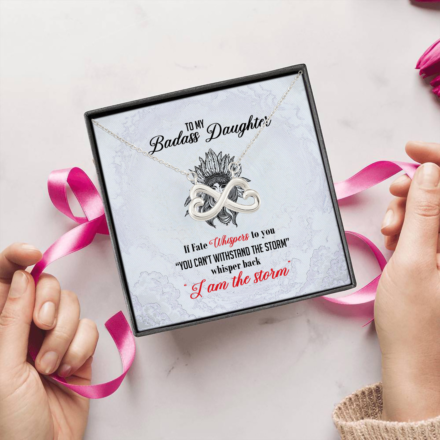 Let’s Shop To My Badass Daughter If Fate Whispers To You You Can’t Withstand the Storm Infinity Heart Pendant Necklace!
