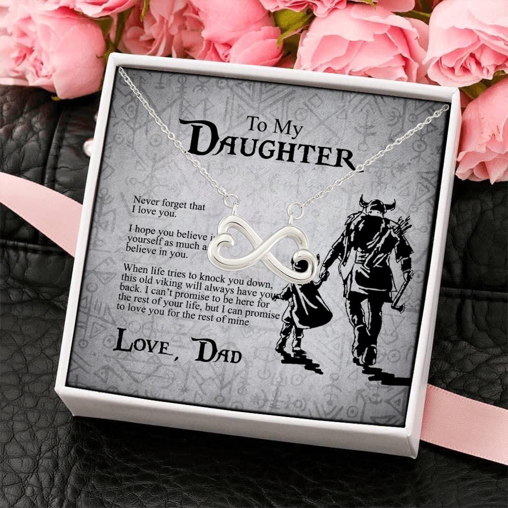 Let’s Shop Viking Dad to My Daughter Never Forget That I Love You I Hope You Believe in Yourself Infinity Heart Pendant Necklace!