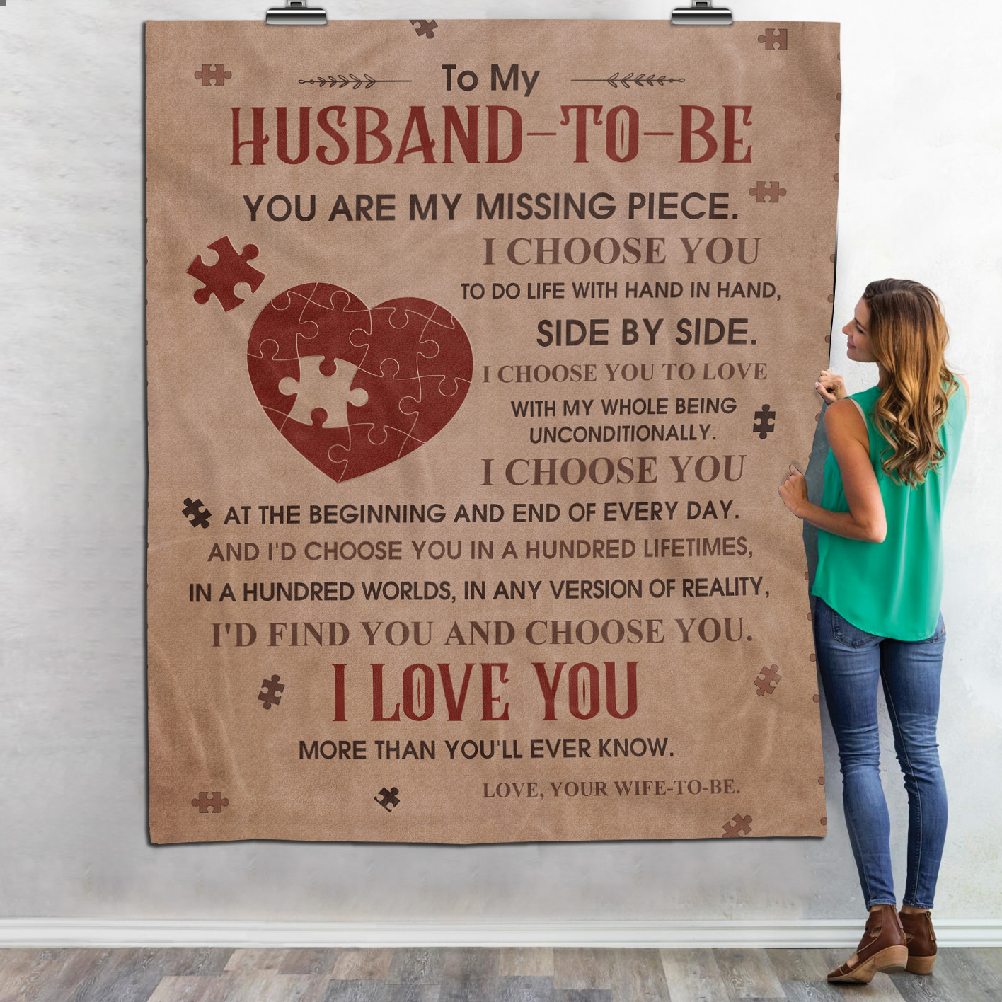 Let’s Shop To My Husband To Be You Are My Missing Piece I Choose You To Do Life With Hand In Hand Puzzle Fleece Blanket!
