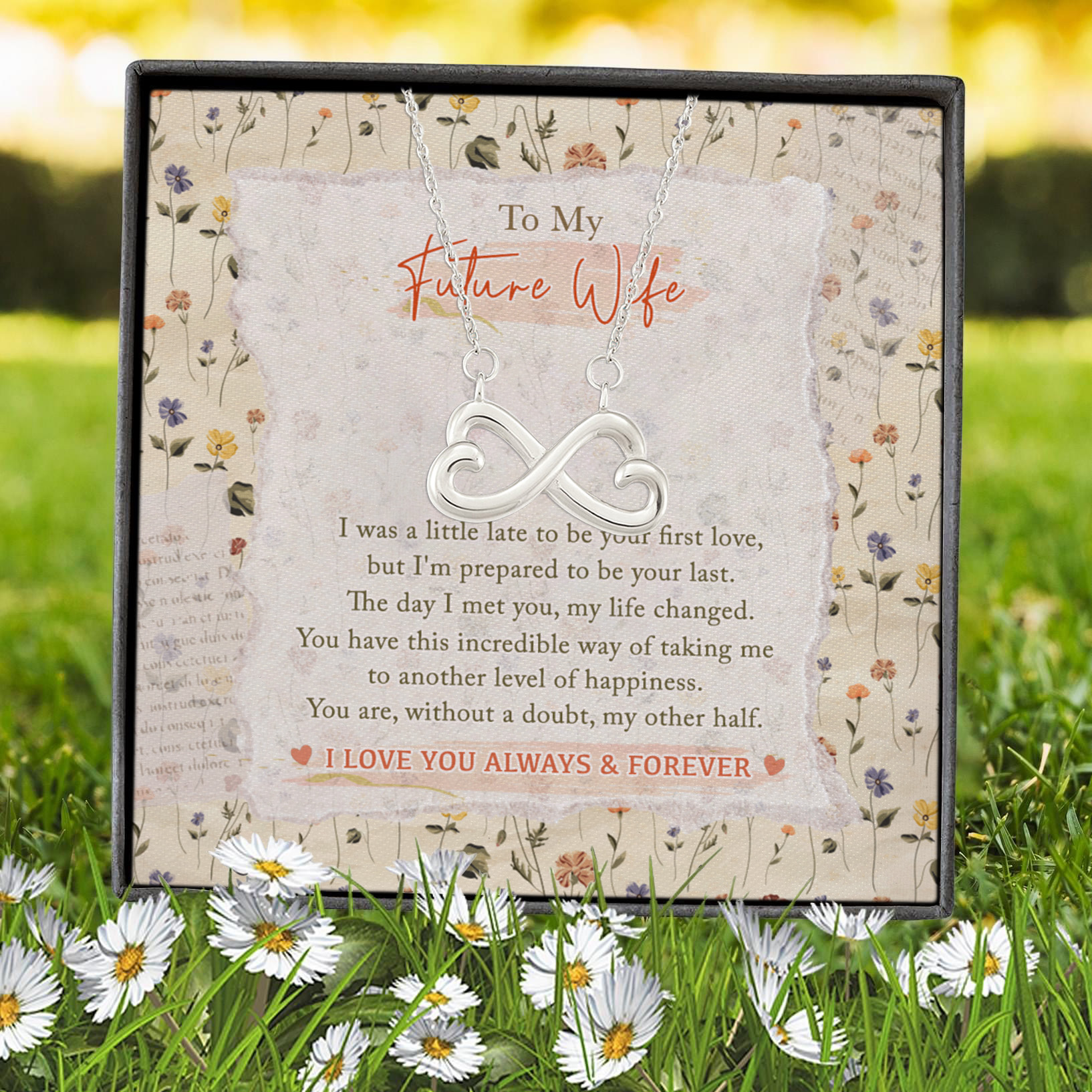 Are you spending too much time to find creative merchandise for you or suitable & special gifts for your mommy, your daddy, your son, your daughter, your children, your friends or someone you love? The struggle is over because we have various To My Future Wife Necklace, Necklace to My Future Wife, to My Future Wife Gold Necklace, to My Future Wife I Love You Necklace, to My Future Wife Necklace Box, to My Future Wife Heart Necklace, to My Future Wife Necklace Gold, to My Future Wife Necklace Knot which will make perfect presents for your beloveds. In order to make your present stand out, we have created lots of unique and awesome customized photo gifts & personalized designs.