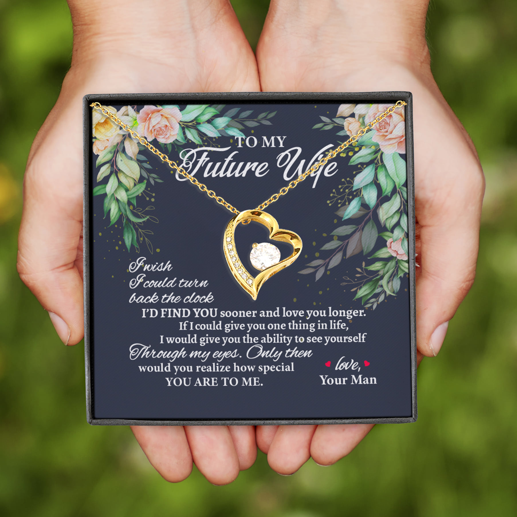 Are you spending too much time to find creative merchandise for you or suitable & special gifts for your mommy, your daddy, your son, your daughter, your children, your friends or someone you love? The struggle is over because we have various To My Future Wife – Forever Love Necklace, to My Future Wife Necklace Forever Heart Love Cube, to My Future Wife Necklace Gold, Necklace to My Future Wife, to My Future Wife Heart Necklace, to My Future Wife Necklace Heart, to My Future Wife Gold Necklace which will make perfect presents for your beloveds. In order to make your present stand out, we have created lots of unique and awesome customized photo gifts & personalized designs.