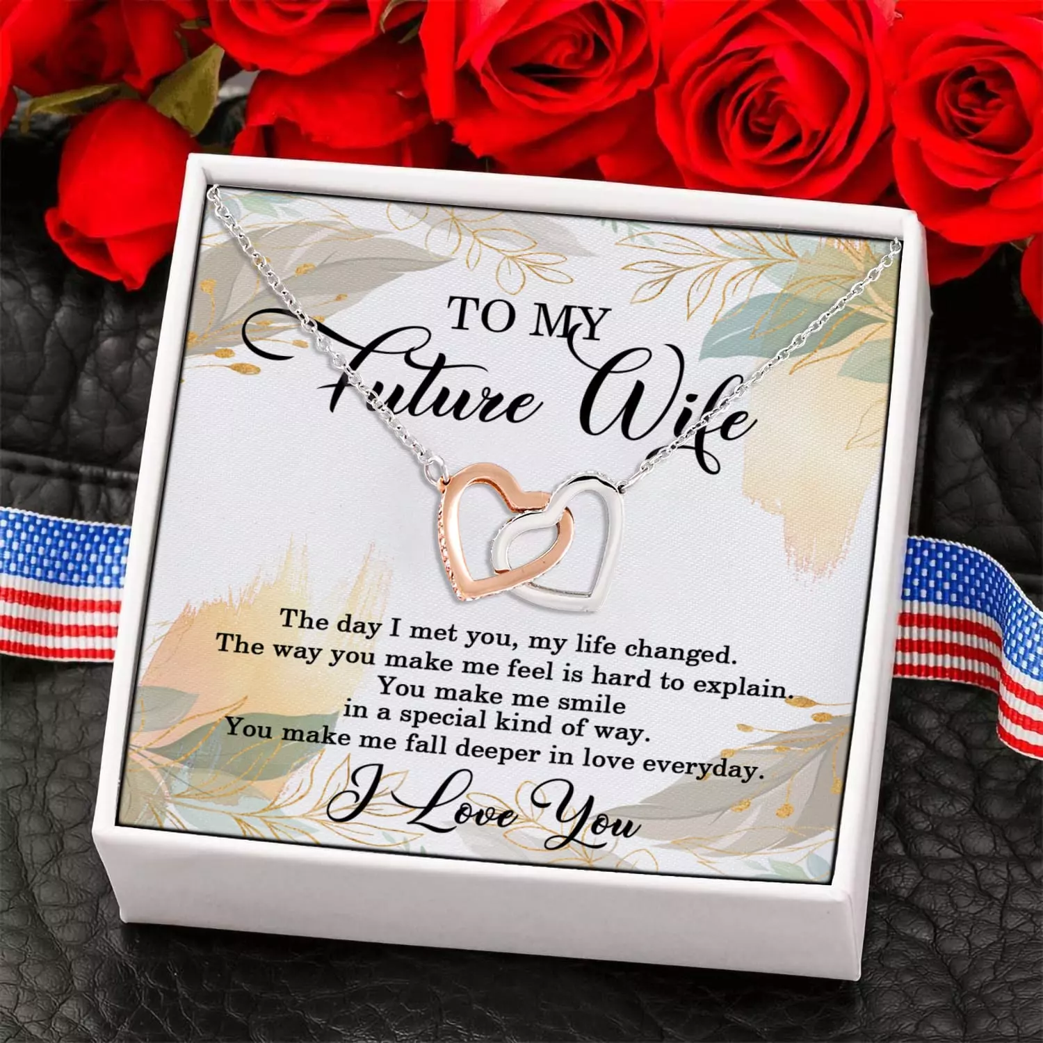Let’s Shop To My Future Wife the Day I Met You My Life Changed Joined Interlocking Hearts Pendant Necklace!