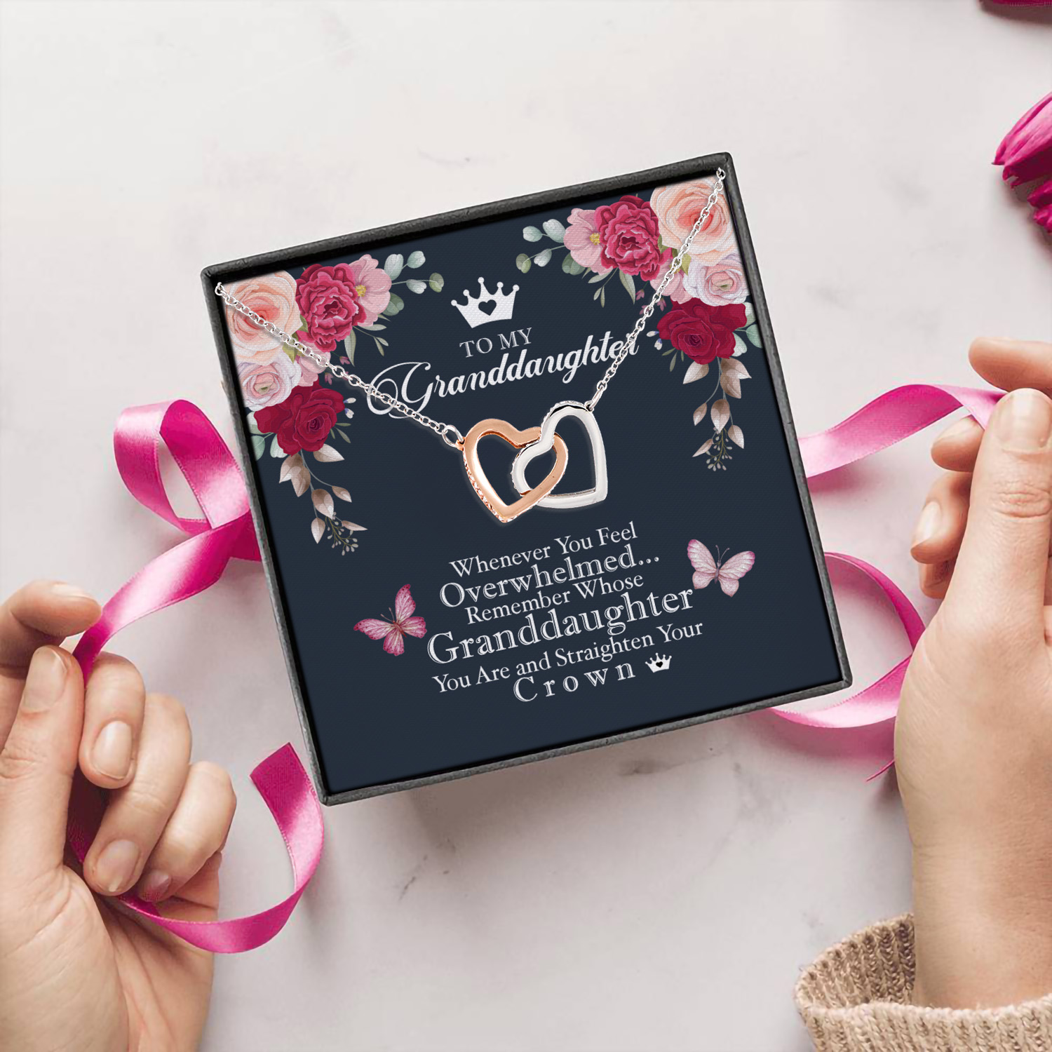 Let’s Shop Granddaughter Whenever You Feel Overwhelmed Remember Whose Straighten Your Crown Interlocking Hearts Necklace!