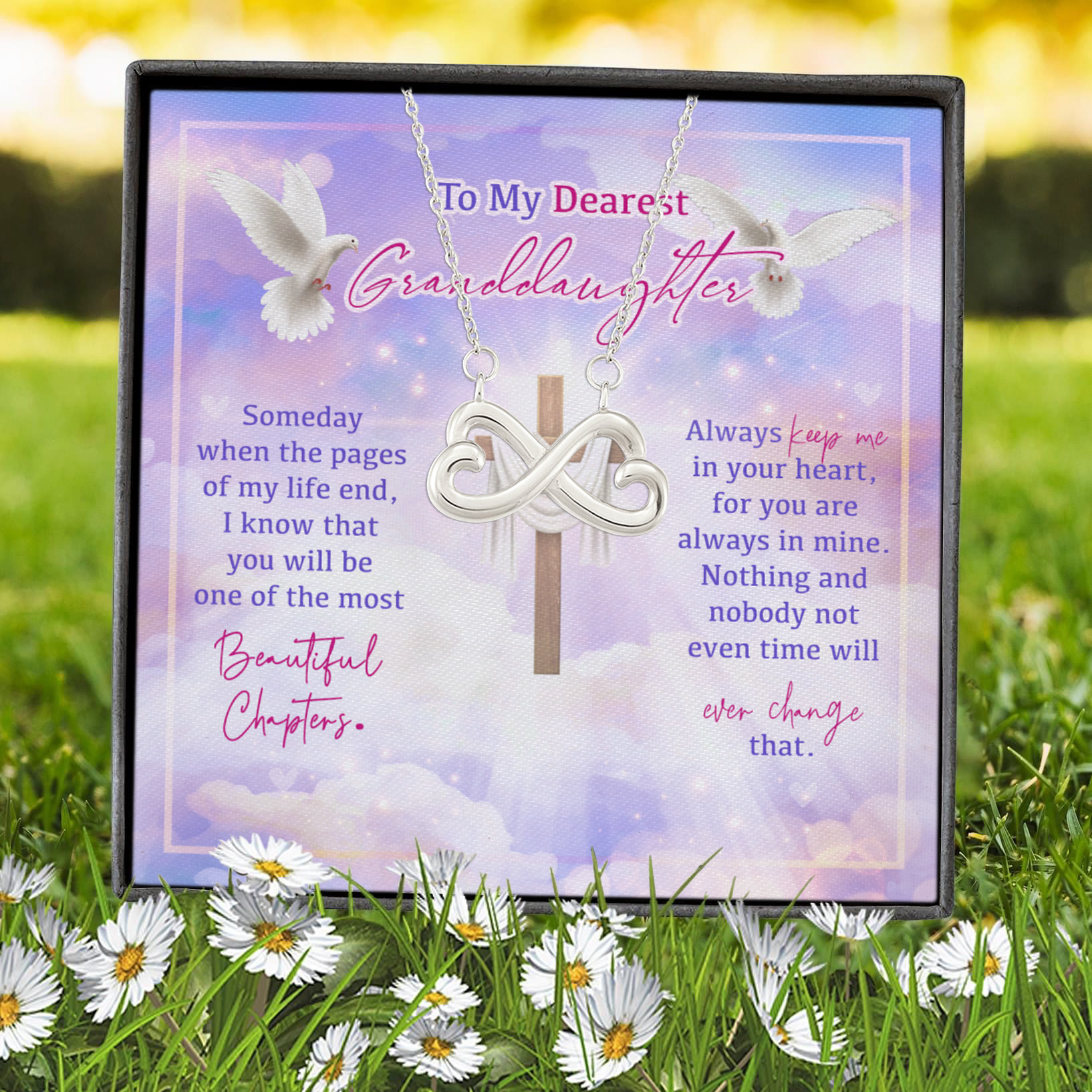Let’s Shop To My Dearest Granddaughter Someday When The Pages Of My Life End Jesus Cross Infinity Heart Pendant Necklace!